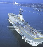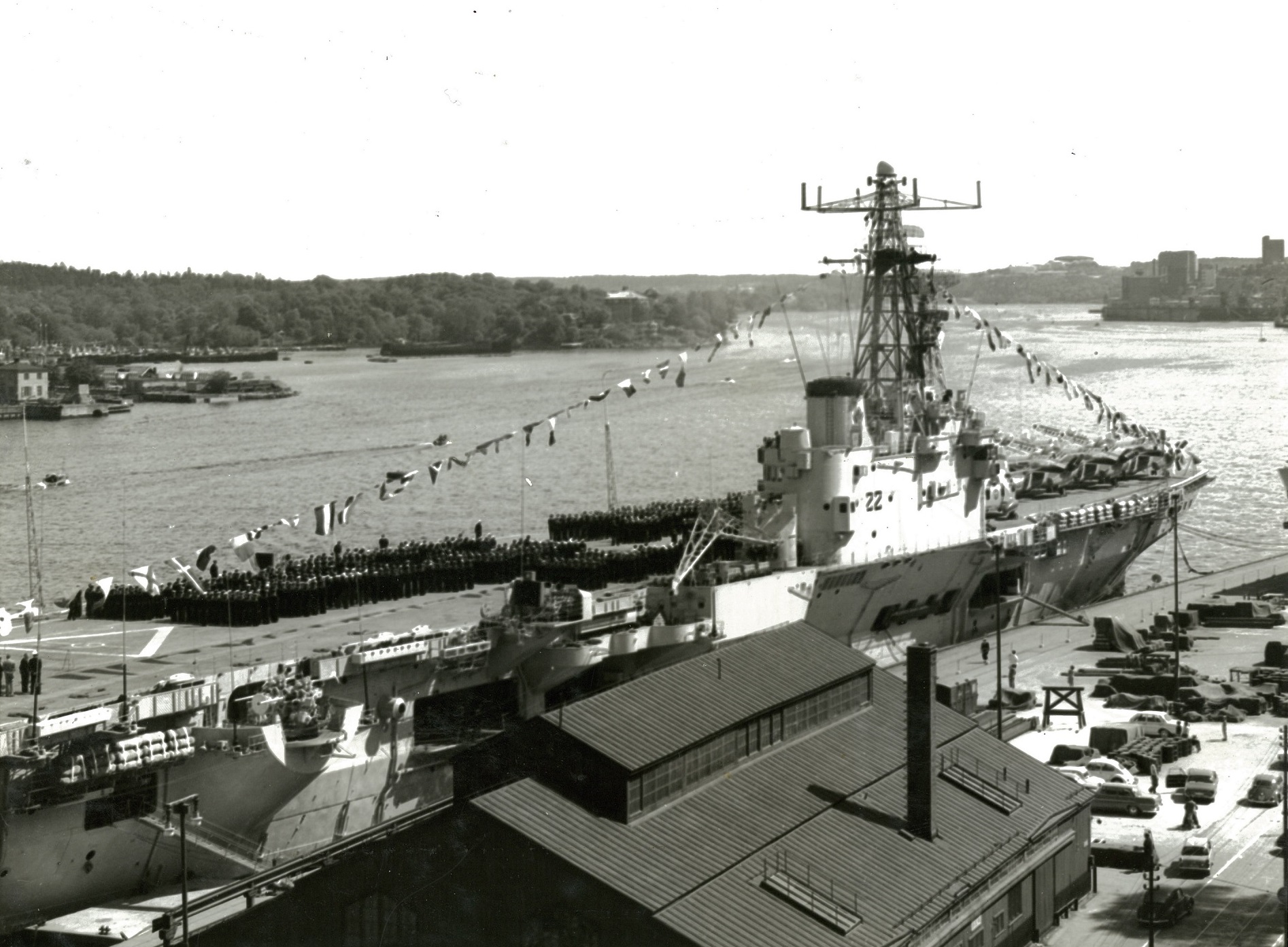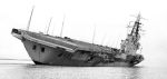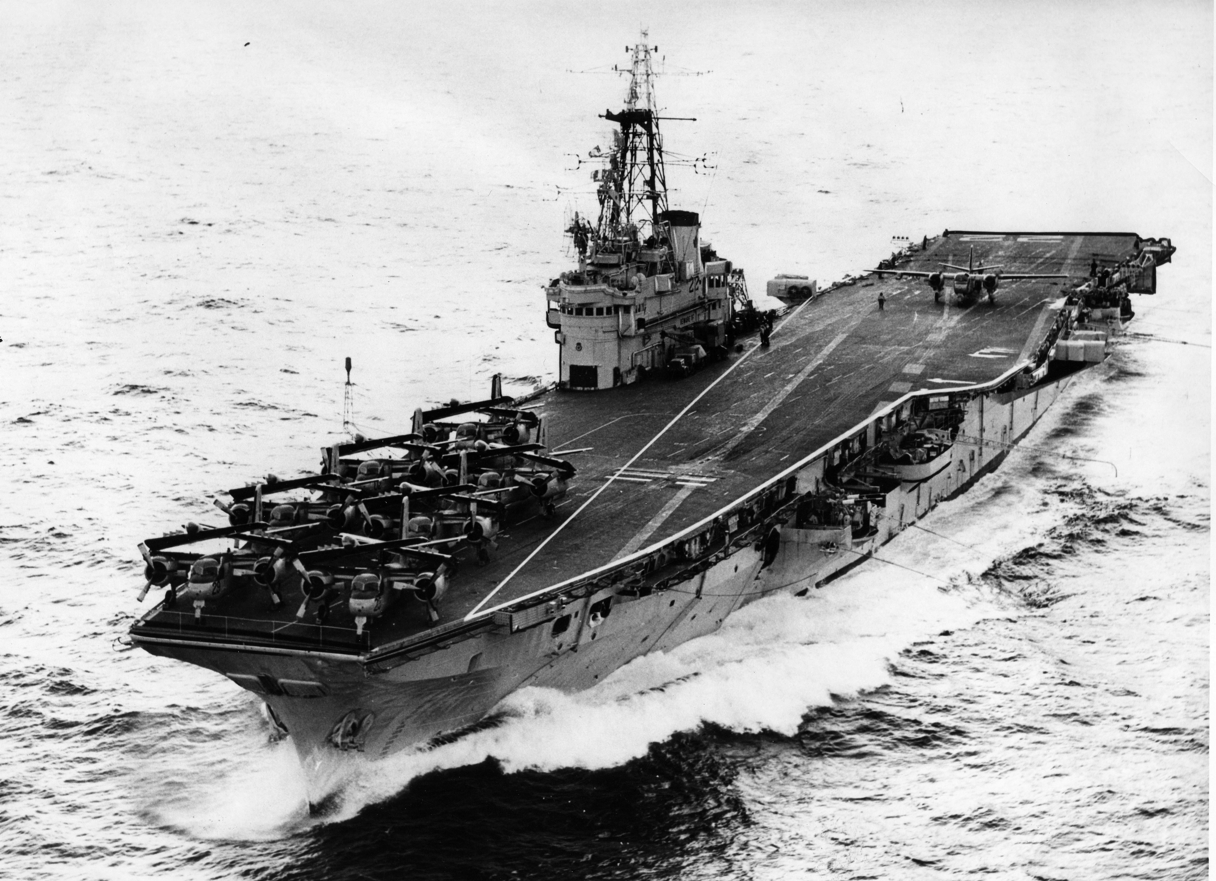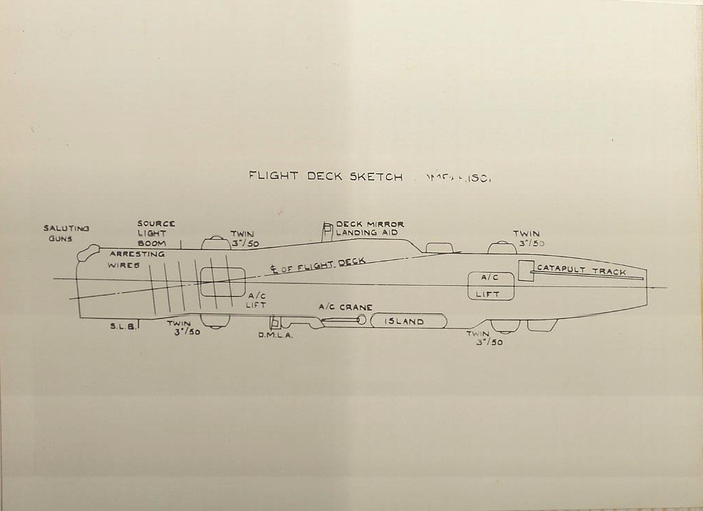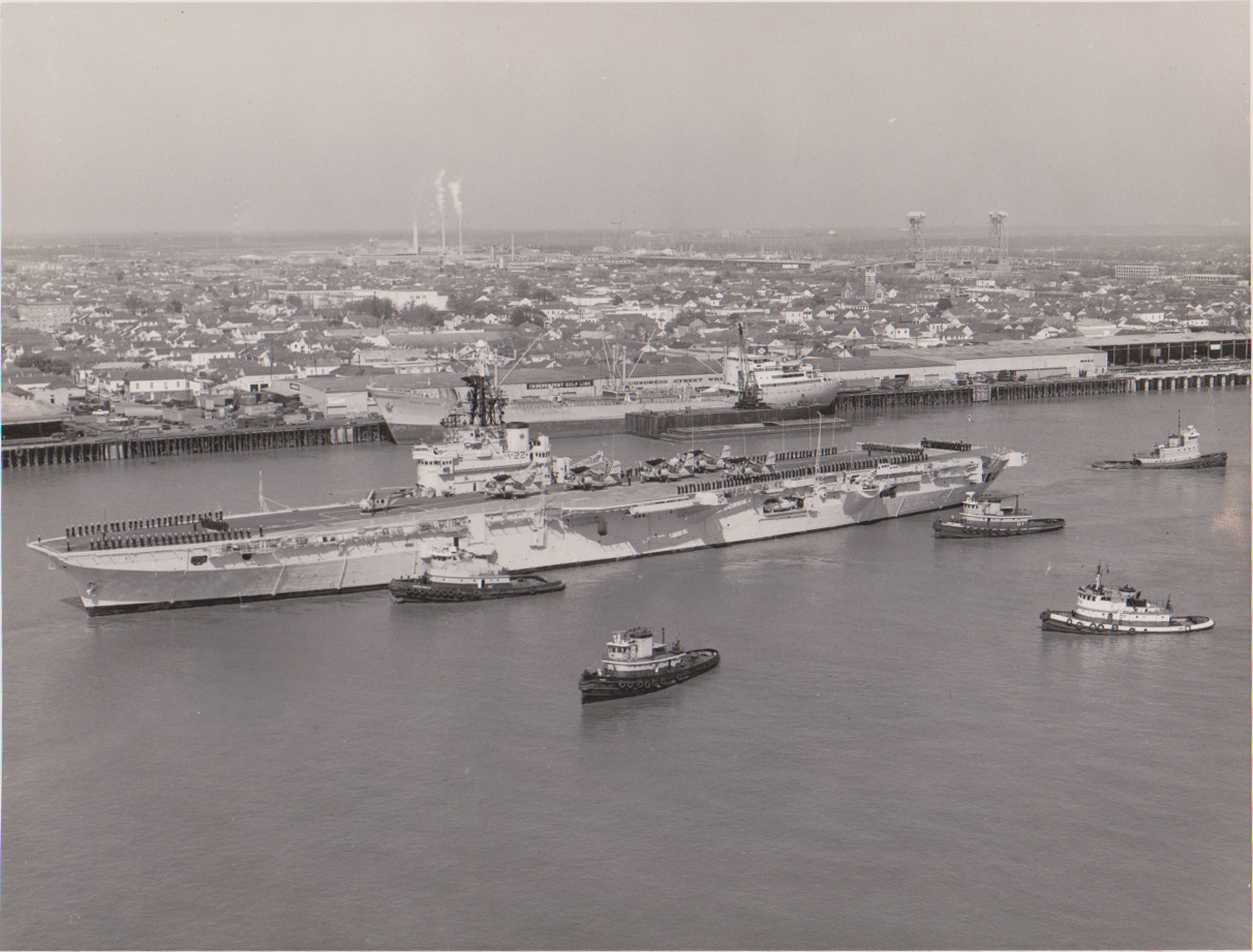 Built by Harland & Wolff Ltd., Belfast, Ireland, she was originally laid down as HMS POWERFUL. Construction on her had been suspended in 1946, but was restarted on 15 Jul 1952 and she was renamed HMCS BONAVENTURE after the bird sanctuary in the Gulf of St. Lawrence. Work on this ship had stopped three months after her launching in Feb 1945, with the result that when construction resumed in 1952, improvements could be built into her. The most notable of these was the angled flight deck, which provided a longer landing run without sacrificing forward parking space, and permitted the removal of the unpopular crash barrier. Also noteworthy were a steam catapult and a mirror landing sight, the latter going far toward eliminating human error in landing.