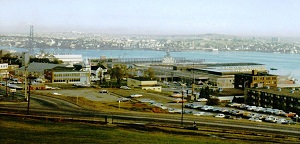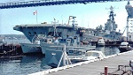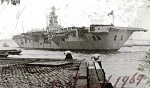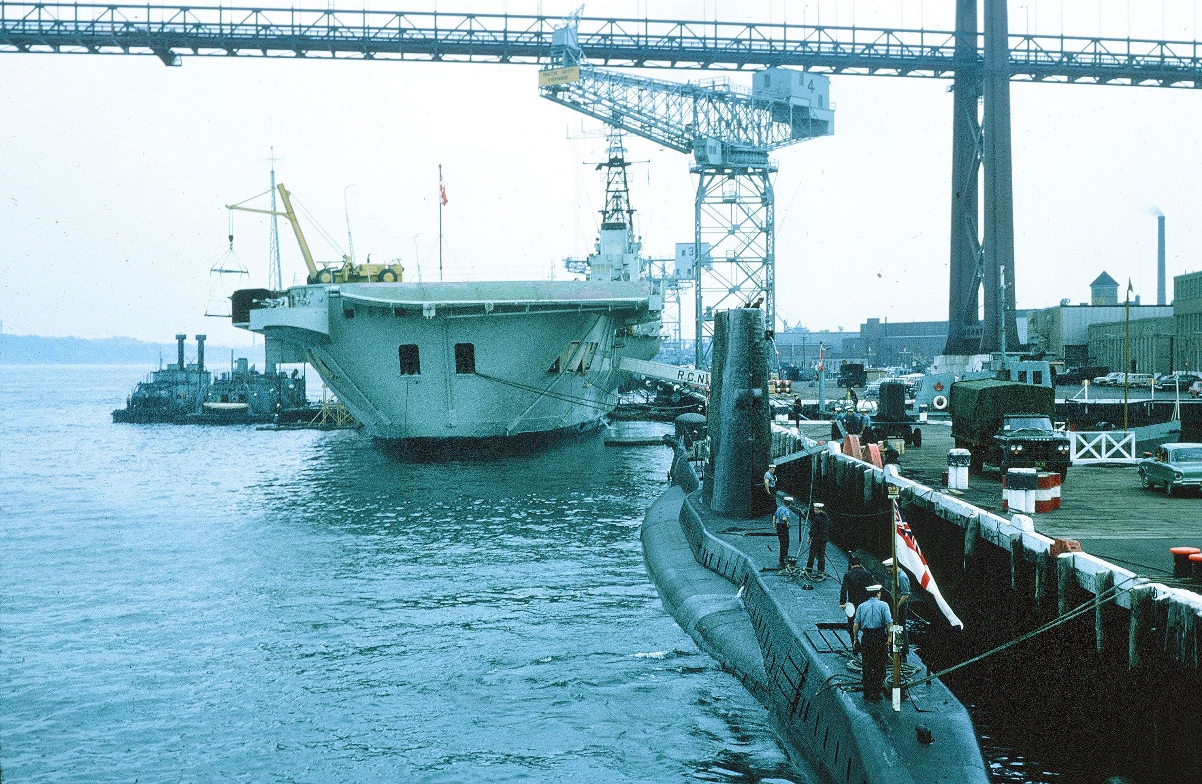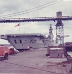 (HG67) Former HMCS BONAVENTURE languishing at Pier 8, Halifax from Jul to Oct 1970 - photo taken 26 Jul 1970 (HG68) Former HMCS BONAVENTURE at pier 8 - Last day in Halifax - 28 Oct 1970. Photo taken from Citadel Hill just before the tugs arrives to tow her to the breaker's yard