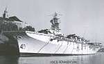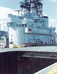 Following the collision, HMCS BONAVENTURE proceeded to Invergordon, Scotland to the former WW II Royal Naval Base and ship refueling facility. While damage to the Carrier's Hull was minimal, her fuel supply was below the accepted permissible level. Invergordon, Scotland was the nearest docking facility capable of docking an air craft carrier. HMCS ATHABASKAN received considerably more damage to her super structure and communication aerials than the "Bonnie". Without the required fuel she was to receive from the Carrier, ATHABASKAN had to make way to the nearest port which could facilitate her requirements. This port was the shipyards of Hartland and Wolff in Belfast - Northern Ireland. Having received temporary repairs, HMCS ATHABASKAN proceeded on her mission which was the overhaul of her radar system at Portsmouth England - a service not available in Canada. Permanent repairs necessitated by the collision with HMCS BONAVENTURE at sea, would now be carried out at Portsmouth. (click here to view photos taken during the collision)
