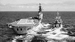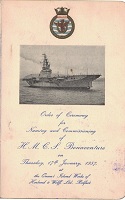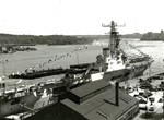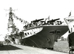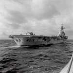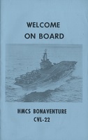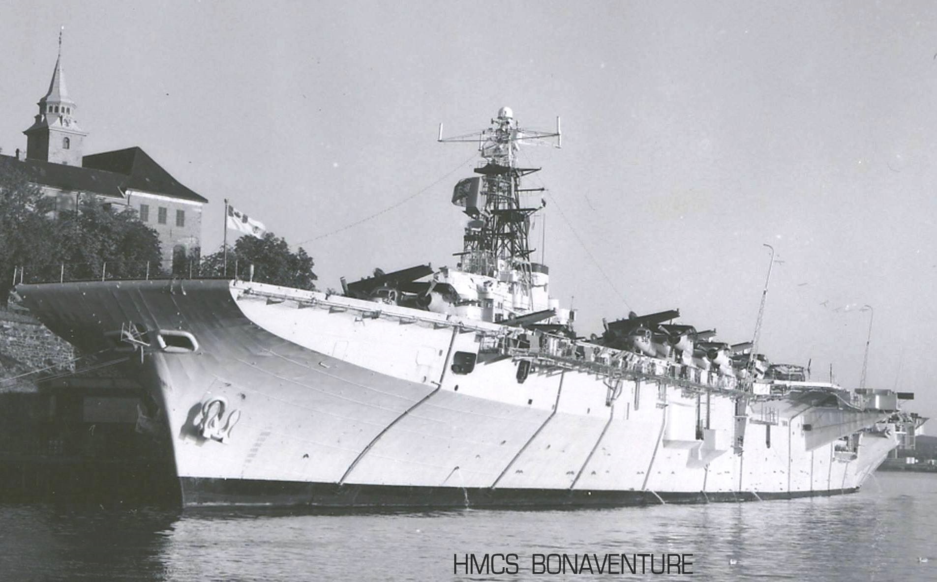 "Bonnie" was commissioned at Belfast on 17 Jan 1957, and arrived at Halifax on 26 Jun 1957, carrying on deck an experimental hydrofoil craft that was to serve in the development of HMCS BRAS D'OR. Unlike her predecessors, BONAVENTURE had Banshee jet fighters and Tracker A/S aircraft as her complement. Like them, she enjoyed a busy career of flying training and participating in A/S and tactical exercises with ships of other NATO nations.