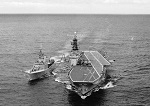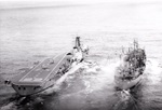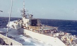 In the summer of 1963, BONAVENTURE was conducting exercises in the North Atlantic with ATHABASKAN as her plane guard. One one occasion, while conducting a RAS with ATHABASKAN, the two ships collided. The BONAVENTURE received some minor damage, while ATHABASKAN'S was more serious.