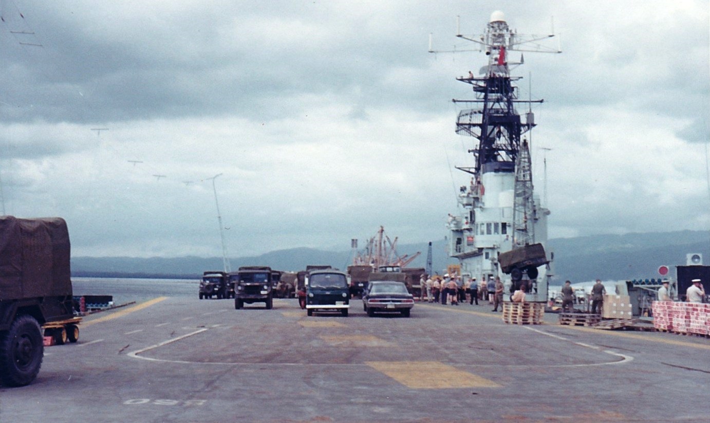 (HG46) At Jetty 4 in Halifax - Army vehicles to be loaded on HMCS BONAVENTURE for Exercise Nimrod Capers in Jamaica - 13 Jan 1970 (HG47) Craning a duce and a half aboard HMCS BONAVENTURE - 13 Jan 1970 (HG48) HMCS ASSINIBOINE fueling from HMCS BONAVENTURE 24 Jan 1970 during passage south 21-25 Jan 1970 (HG49) Unloading in Kingston, Jamaica - 26-28 Jan 1970 (HG50) HMCS BONAVENTURE piping Diamond Rock, Island of Martinique. Pipers led by PO "Cappy" Shaw