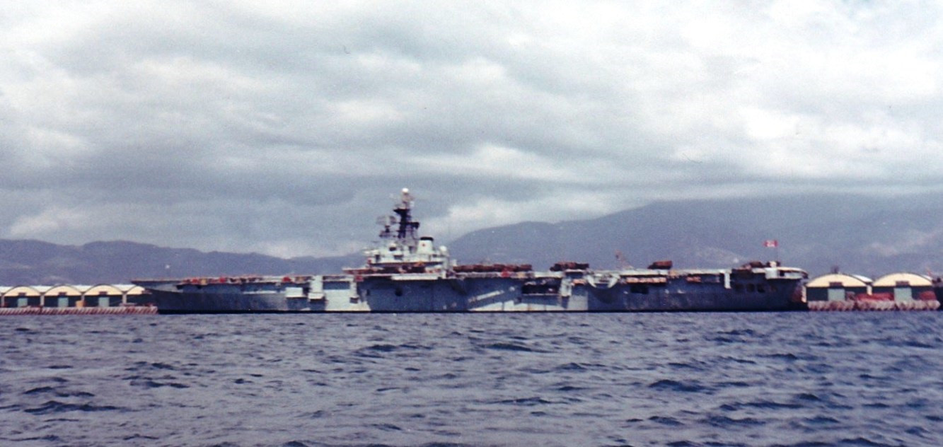 (TP01) Farewell is bid to the Bonnie as she pulls away from the jetty bound for Cyprus (TP02) HMCS BONAVENTURE leaving for Cyprus. Armament laid out in from of aircraft (TP03) Flight deck of HMCS BONAVENTURE // This was the flight deck of the BONAVENTURE on way to Cyprus. I worked arrestor gear so it was not too bad of a trip. We even had a few Army stowaways who just wanted out of C.F.B Gagetown - they were found hiding in trucks, very seasick, and hungry. (TP04) Helo operations on HMCS BONAVENTURE. Front helo being refueled