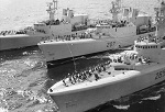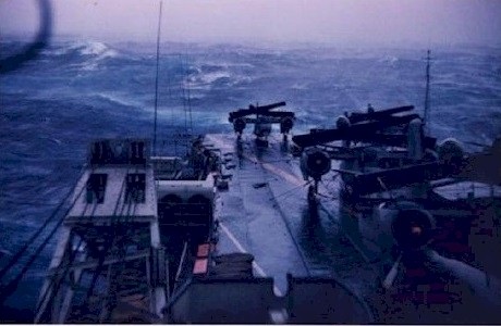 In Oct 1963, BONAVENTURE, ALGONQUIN, CAYUGA, MICMAC and SASKATCHEWAN took part in a NATO exercise in which all participating ships were battered by a severe North Atlantic storm.