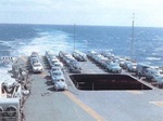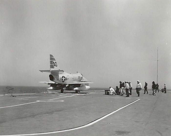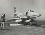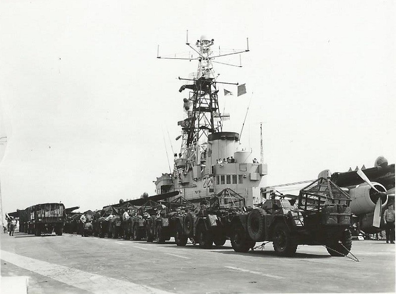 In 1964, due to the escalating crisis in Cyrpus, the United Nations formed a peacekeeping force to which Canada was invited to contribute troops and supplies. In order to convey them to Cyprus, the BONAVENTURE, which was in Gibraltar taking part in a NATO exercise, was ordered to return to Halifax in support of Operation Snowgoose. She departed Gibraltar on 07 Mar 1964 and arrived in Halifax on the 13th. On 18 Mar 1964, HMCS BONAVENTURE departed Halifax enroute to Cyprus. For the deployment BONAVENTURE was loaded with 56 vehicles, 70 tons of stores and ammunition, and 95 men from the Vandoos, the Royal Canadian Dragoons, and the Royal Canadian Army Service Corps. She arrived at Famagusta on 30 Mar 1964 where she came to anchor. After the stores and troops had been landed and the ship's company had been granted a day of relaxation in port, the BONAVENTURE with her escort destroyers left for Malta and Gibraltar for short port visits, and then to Norfolk, Virginia, to begin a series of tests with the Douglas Skyhawk aircraft.
