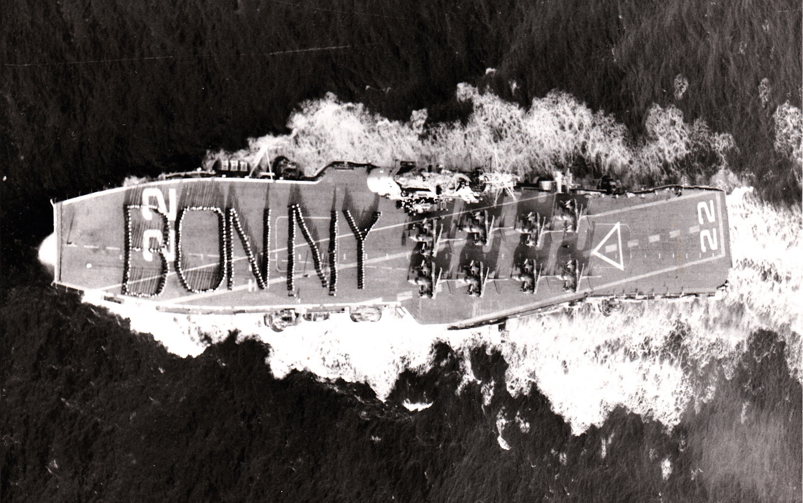 (BVN050) HMCS BONAVENTURE, Maple Spring 1970 // Photo taken from HMCS Annapolis by Jean Viau, NavSig (BVN051) "Working the flight deck on the Bonnie" // Courtesy of John Knudsen (BVN052) Visit to 2 Mess on BONAVENTURE by "the pig of the port" // Courtesy of John Knudsen (BVN053) HMCS BONAVENTURE - 1962 // Courtesy of Art Moore (BVN054) Stu Rodgers on HMCS BONAVENTURE // Courtesy of Kim Rodgers-Risi