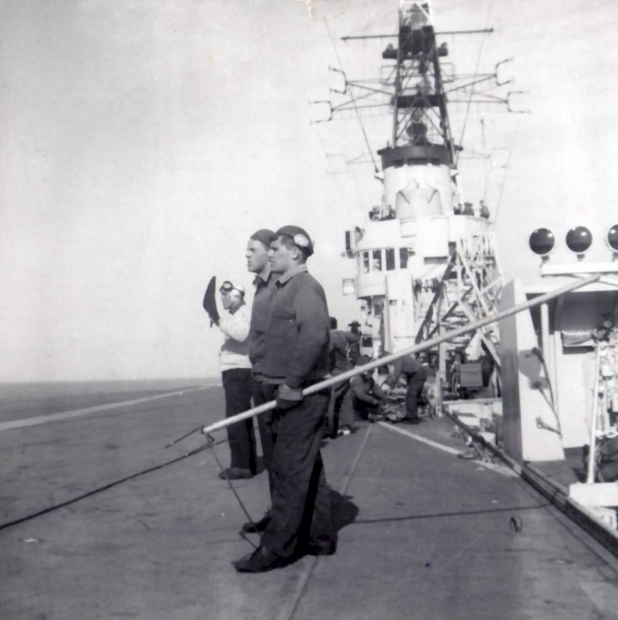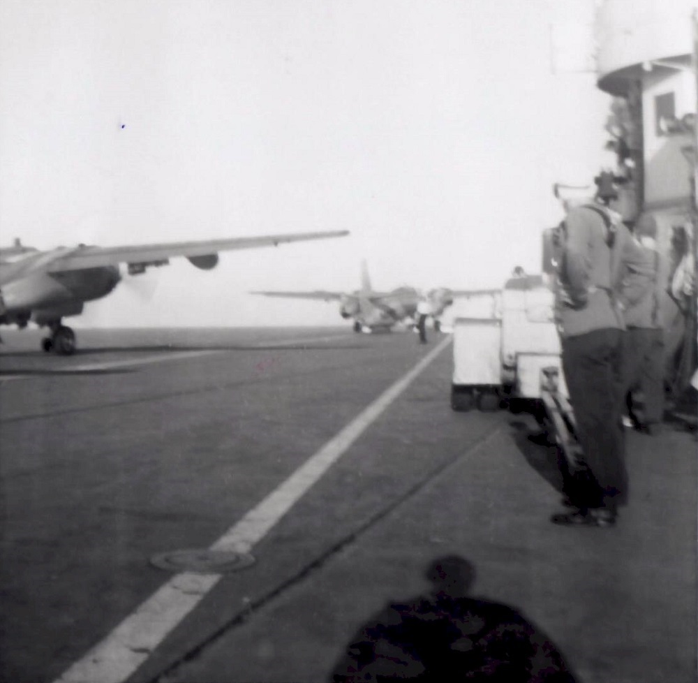 (JM06) Trackers on the fight deck of HMCS BONAVENTURE (JM07) Bud McLean, John Mcguire, Larry O'Brien and John Tang on board HMCS BONAVENTURE (JM08-JM10) Three photos of a Tracker launch on HMCS BONAVENTURE. Unbelievably, the Tracker was not lost and managed to get airborne