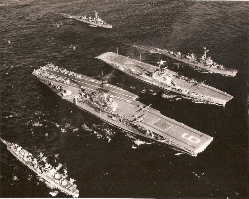 (BVN022) Newspaper Article on HMCS BONAVENTURE (and the whole Atlantic Fleet of the RCN) taking part in the Cuban Missile Crisis // Courtesy of Byron Freeman (BVN023) HMCS BONAVENTURE at NAD - circa 1961-63 // Courtesy of Claus Mathes (BVN025) Ted Gibbons, John Thompson, AB Wilton and Larry Washbrook pose for a photo after Exercise Sharpsquall during which, on Oct 15, 1962, they made the 11,000th landing on BONAVENTURE // From the collection of Ted Gibbons // Courtesy of Charles (Chuck) O'Neill