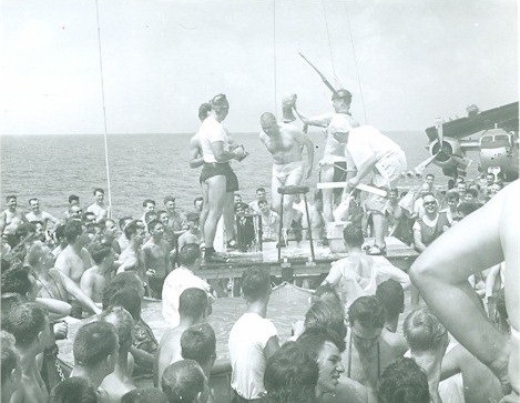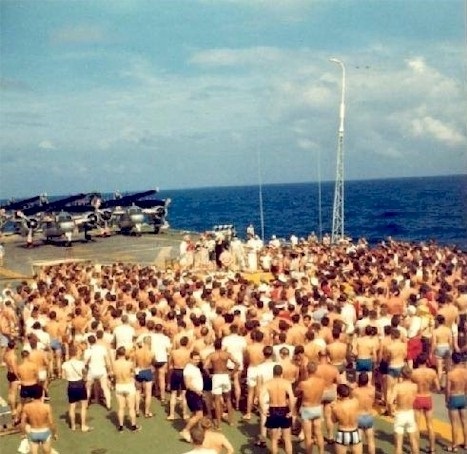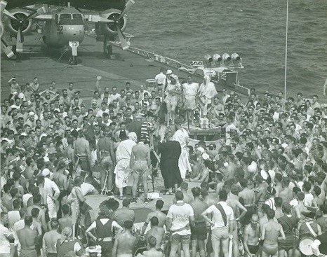 (BVN035-BVN039) Crossing the Line ceremony on HMCS BONAVENTURE 1966 // Courtesy of Keith McDougall