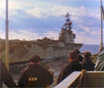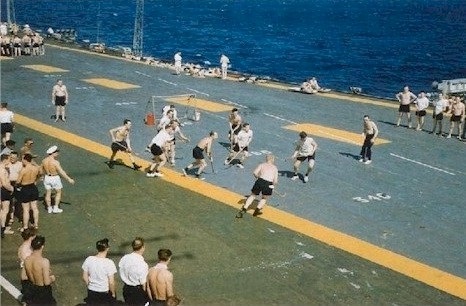 A brief word on the Deck Department over the last year: This was led by LCdr Jim Murwin (who was succeeded by Lcdr Jim Bowen and became BONAVENTURE'S last XO), a gentleman who directed with a light touch and a paternal manner. This was appropriate for the mainly young boatswains. The Petty Officers however were very experienced indeed, one of whom was a WWII veteran. They were led by the estimable CPO John Newton, the carrier's last Buffer. Overall, it was a great team.