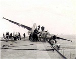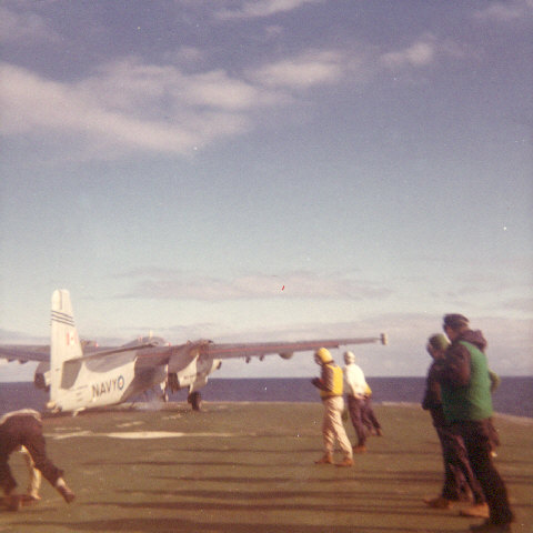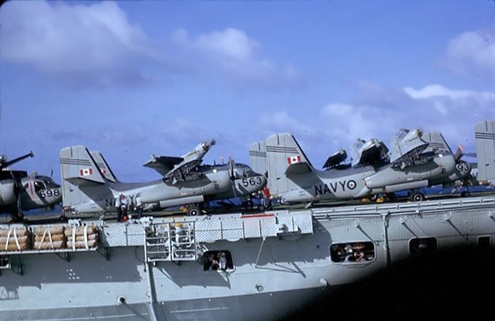 On 16 Feb 1969 a Grumman Tracker stalled on take-off and crashed. The following is from Chuck MacDonald who was the Nav Yeoman onboard BONAVENTURE at the time: I was LS NavYeoman for LCdr Scott-Montcrief the Navigator and had been stood down early for lunch. BONAVENTURE, in company with other ships for Exercise Maple Spring '69, was operating out of Roosevelt Road PR and in transit to Wilmsted Curaçao. We had ongoing air operations with catapult launches scheduled for 1100 hrs. Coincidentally, rum ration began on the cable at the same time. While standing around savouring my Tot and chatting in the background we could hear the normal activity from the flight deck. Suddenly the catapult accelerated and crashed into the stops. The noise immediately got everyone’s attention toward the stop which had us looking at the bow only to see the undercarriage of a tracker appear. The engine noises from the Tracker had the distinctive wallowing sound of a stall and it was clear it wasn’t gaining altitude. At that point I dropped my tot mug over the side as I left the cable deck on the way to my emergency station on the bridge. While I was running the aircraft had landed upright on the sea surface only to be immediately run over by BONAVENTURE with impact right on the bow. By the time I reached the Command Platform the impact site was astern of us. Above the site of the impact was the rescue helicopter Pedro hovering at about 75 feet. The Rescue Diver had already jumped into the water and fortunately landed in close proximity to the pilot Lt(N) Jack Flanagan. The pilot had lost a portion of one lower leg and was bleeding profusely into shark infested waters. The diver took quick action applying a tourniquet, Pedro hoisted the pilot and delivered him to the waiting medical staff on the flight deck , in two and a half minutes. By this time a destroyer in company had launched rescue boat and I believe BONAVENTURE had as well. The remaining crew were all safely returned to BONAVENTURE with their flight suits adorned with rust red of boot topping. Many stories of how they saw the various parts of the hull impact them and most notably the propellers slowing down but they had not stopped. All crew members survived and Lt(N) Flanagan continue to serve as a pilot.