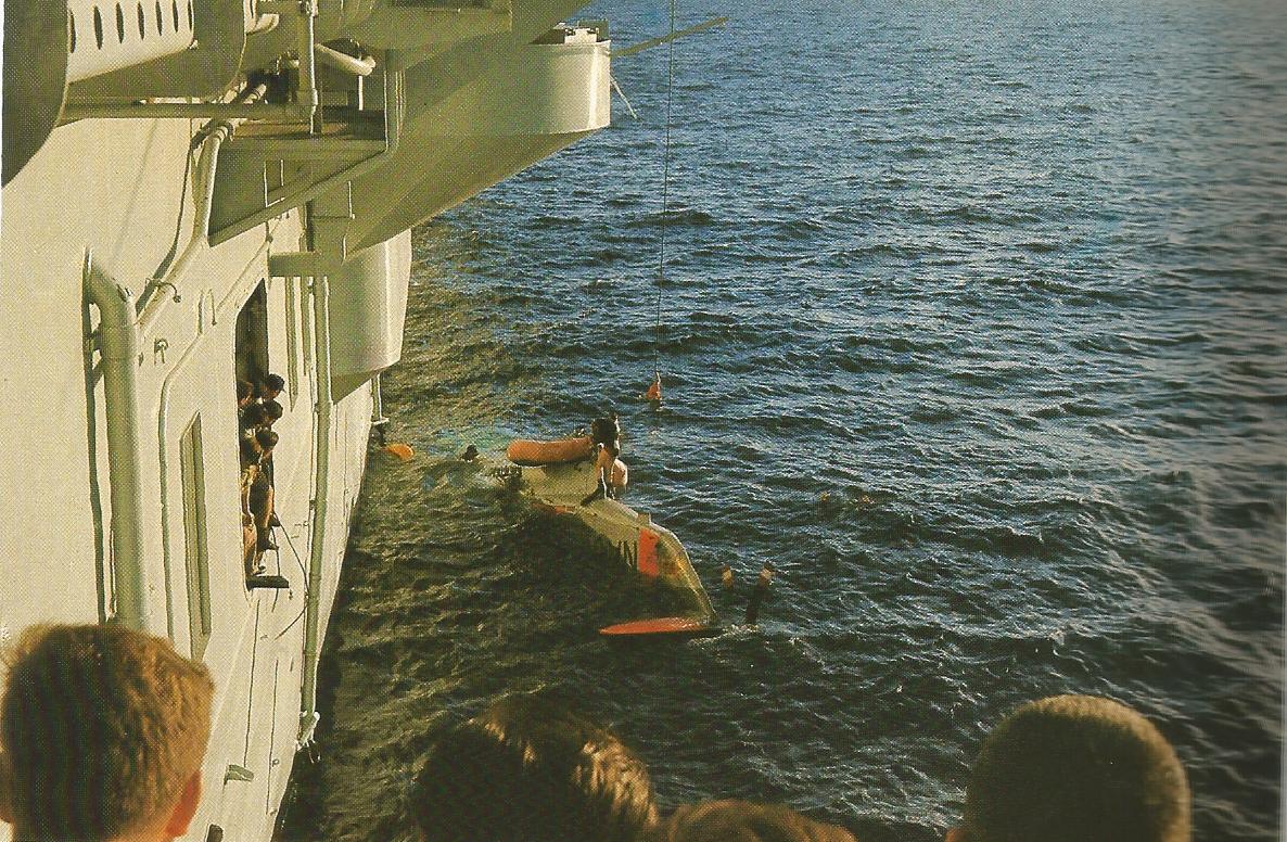 As recalled by Mrs. Carole Wolfe to her son: I believe the Sea King was doing a strange yaw-kick on its previous flight, and I believe your Dad said he had taken the chopper out right away again. I don't know that it was approved by the CO, or whether the previous crew okayed it. On the carrier they didn't necessarily shut the blades down as the crews changed, so it might even have still been running.
