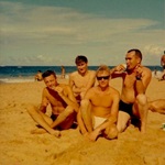 Your Dad did come to in the water, and when he realized he was still in his seat, he snapped out of his harness and got to the surface. Brian had already got the dinghy inflated and helped pull your Dad into it. Your Dad had blood all over his face from a slash across the bridge of his nose, which they later determined probably came from flying through the windshield and hitting the wiper arm. His appearance gave Brian quite a scare. When he was airlifted to Bermuda, they dropped him out of the sling onto the deck of the DDH. So, he wasn't too happy about that either.