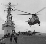 (BL81) Tracker landing on the flight deck of HMCS BONAVENTURE -1967 (BL82) A Tracker taking off from HMCS BONAVENTURE - 1967 (BL83) A Huey and Sea King helicopter landing on the flight deck of HMCS BONAVENTURE - 1967 (BL84) Sea King 4002 on the flight deck of HMCS BONAVENTURE not long before she crashed into the Atlantic resulting in the loss of two air crew personnel (BL85) A Tracker being lowered on the elevator on HMCS BONAVENTURE - 1967 Courtesy of Brian Lapierre, CPO2 ET, RCN / C.A.F. (Navy) © Brian Lapierre 1967