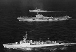 (EM24) HMCS BONAVENTURE with HMCS SKEENA 207 astern - circa 1966 (EM25) HMCS BONAVENTURE with HMCS SKEENA 207 and HMCS RESTIGOUCHE 257 as escorts(EM26) (EM26) “Enroute to Brazil, Uruguay and Argentina, the new Canadian Replenishment Ship, HMCS PROVIDER tops up BONNIE and her destroyer screen”. (EM27) Canadian Task Group enroute to Brazil - 1966 From the collection of Eugene Miller, RCN Courtesy of Rene Miller
