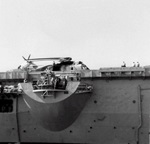 (BVN040) BONAVENTURE Arrives At Rio de Janeiro // Halifax Mail Star, Tue., 08 Feb 1966 pg 26 // Researched by George Newbury (BVN041-BVN042) HMCS BONAVENTURE in a storm - 1967 // Courtesy of John Hawley (BVN043) Article from the Sentinel magazine on HMCS BONAVENTURE'S 1967 refit (BVN044) HMCS BONAVENTURE'S downed CH-124 Sea King in February 1968. All crew was rescued, and the helicopter was recovered (note the Bonnie's crane wires at the photo's right). It took 3 or 4 divers, along with the crane of course, about 4 hours to attach the wires to the Sea King's upper parts, turn the helicopter over and hoist it onto the flight deck. It was dark for the latter part of the procedure. Source: Wikipedia Commons. Photographer: Brett Aubrey