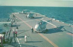(JS06-JS07) Crash on Deck (JS08) "Kootenay's Fallen" - The bodies of those who died in the Kootenay Explosion are being placed in a Helicopter to be taken ashore from HMCS BONAVENTURE (JS09-JS10) Landing Tracker 591