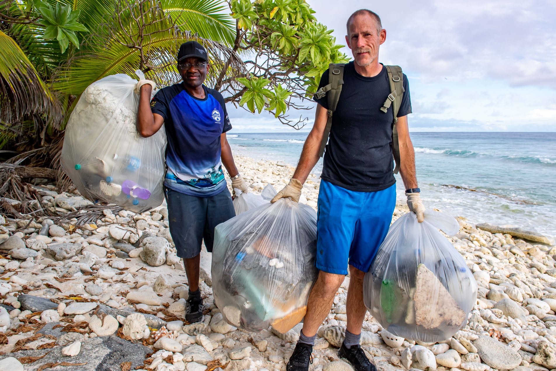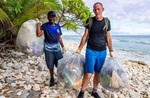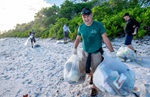 (CGY010-CGY012) HMCS CALGARY clear debris from a 1 km stretch of a beach on the island of Diega Garcia. 80 bags of trash were collected - Jul 2021 // Photographer: Cpl Lynette Ai Dang
