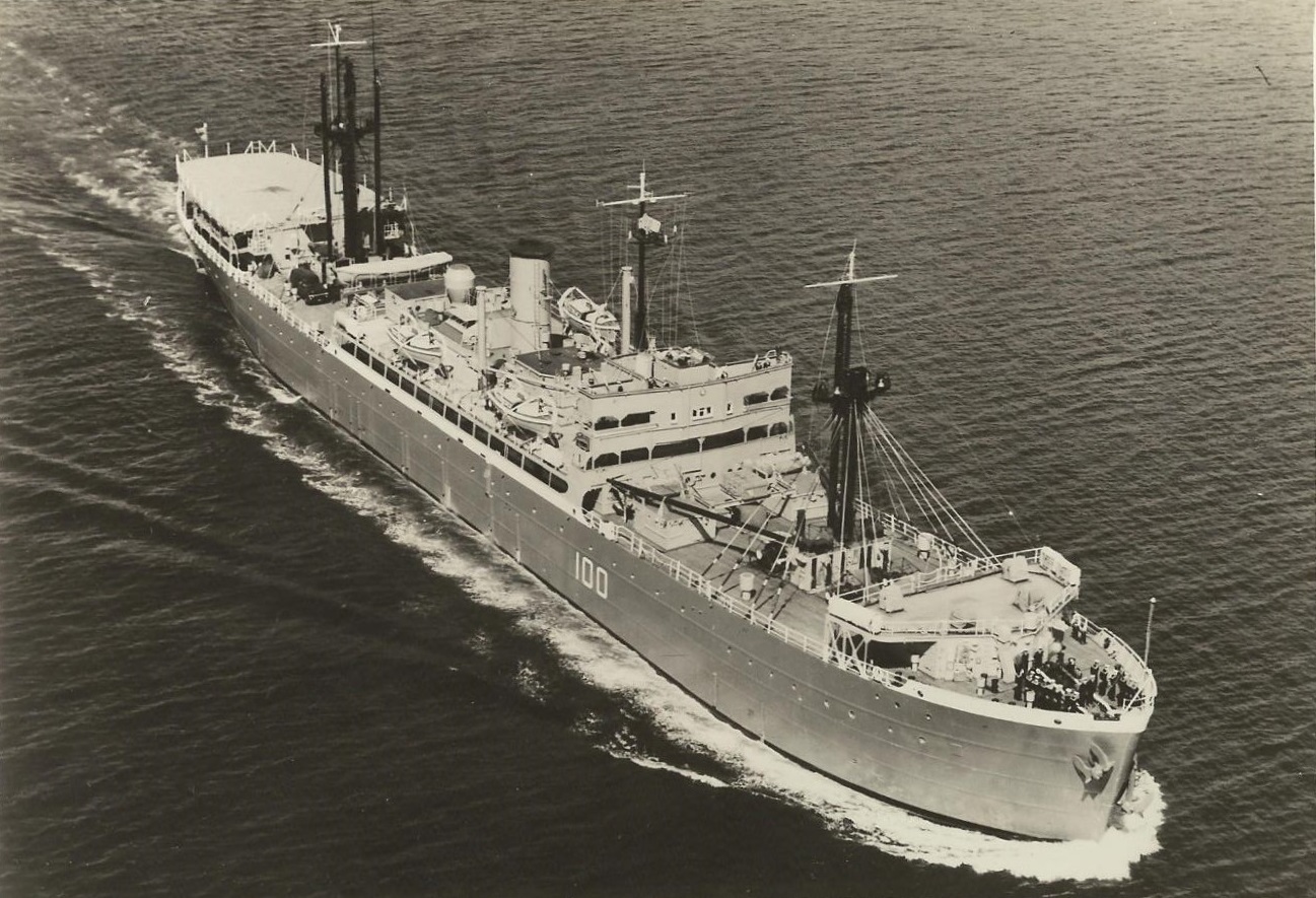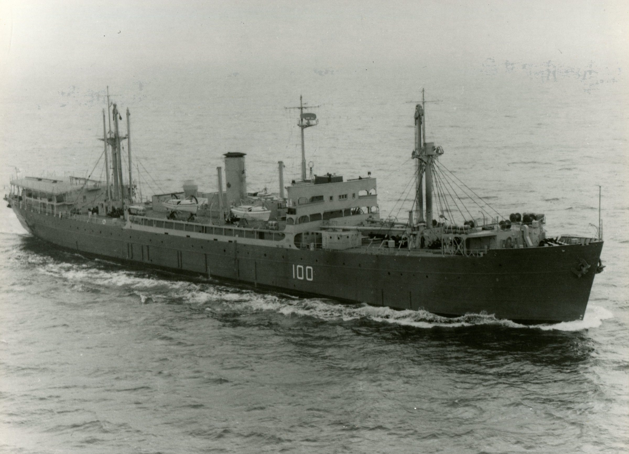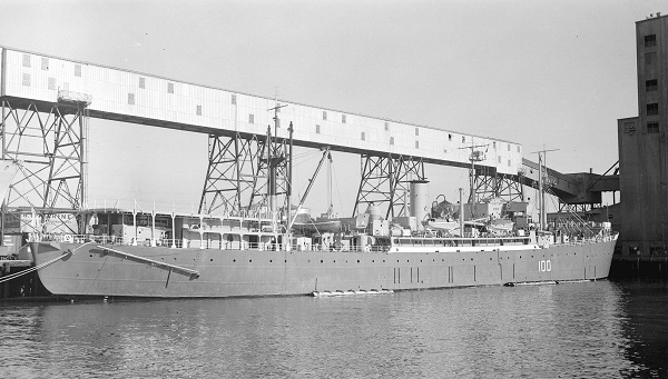 A modified Fort type cargo ship, HMS FLAMBOROUGH HEAD was built by Durrard Dry Dock Co. Ltd. Launched at Vancouver in 1944, she served in the RN until paid off in 1952. FLAMBOROUGH HEAD was acquired from the RN in 1952, and renamed CAPE BRETON upon commissioning on 31 Jan 1953. She served at Halifax until 25 Aug 1958, as a repair ship and training establishment for technical apprentices. Converted to escort maintenance ship at Esquimalt, she was commissioned there on 16 Nov 1959, for service on the west coast. On 10 Feb 1964, CAPE BRETON was paid off into reserve, but since 1972 she has functioned as a towed mobile support facility and accommodation vessel at Esquimalt, designated Fleet Maintenance Group (Pacific). Finally removed from service, she was sold and sunk as an artificial reef on 20 Oct 2001 near Nanaimo, BC.