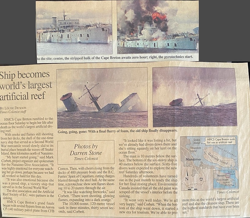 Article on the sinking of the CAPE BRETON as an artificial reef. Source: Facebook post by Earl Broome Click on the above article to view a larger image