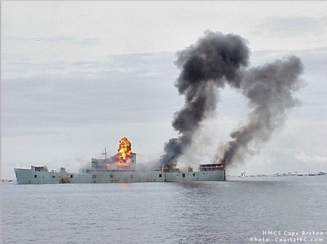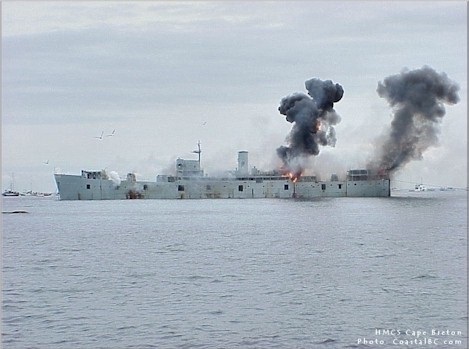 Former HMCS CAPE BRETON 100 being sunk as an artificial reef on 20 Oct 2001