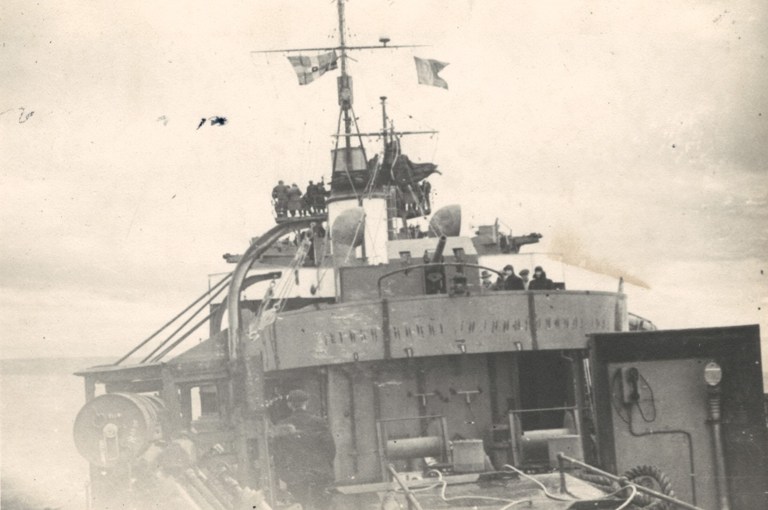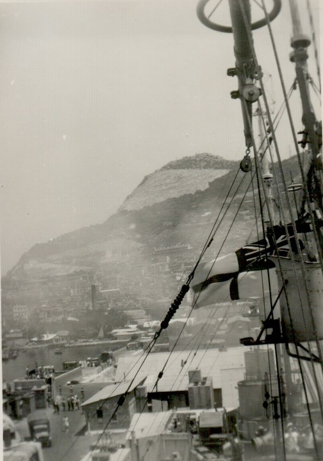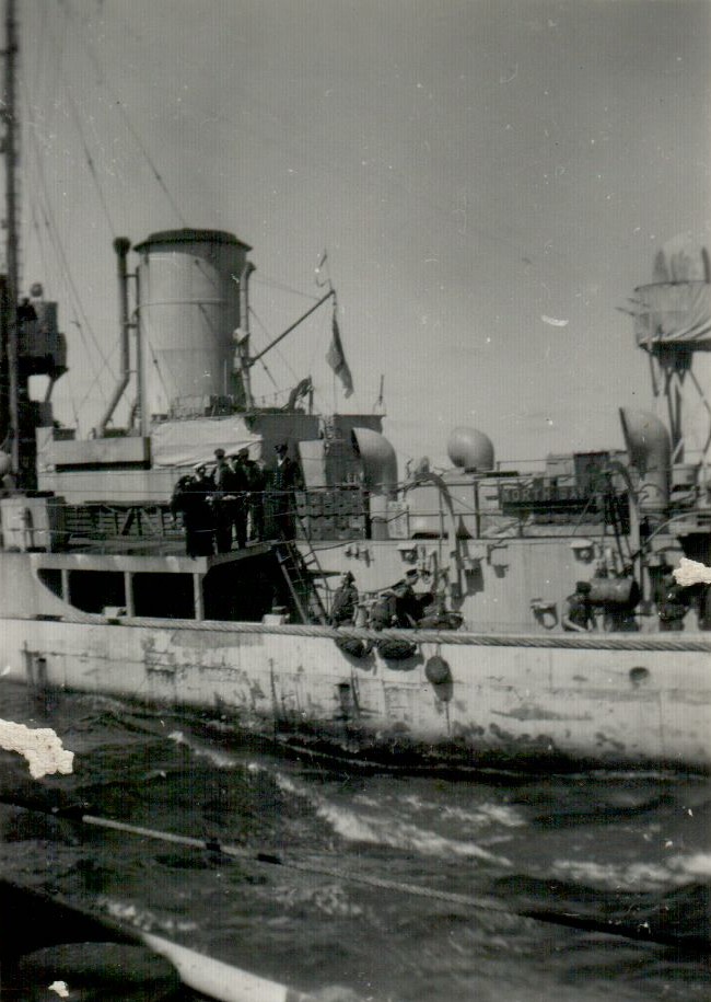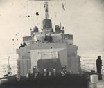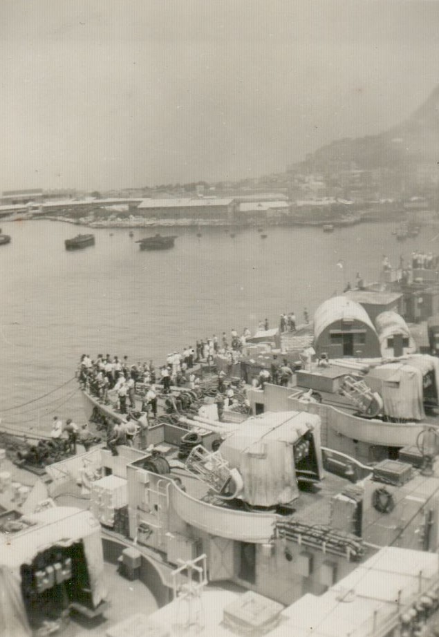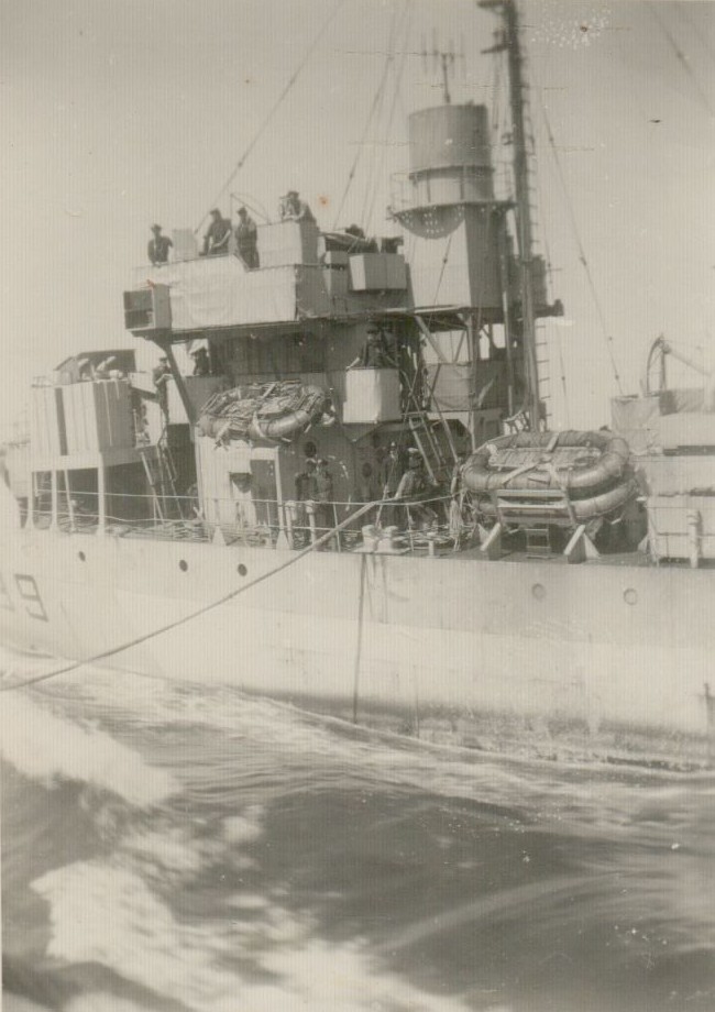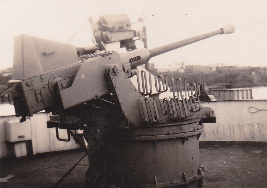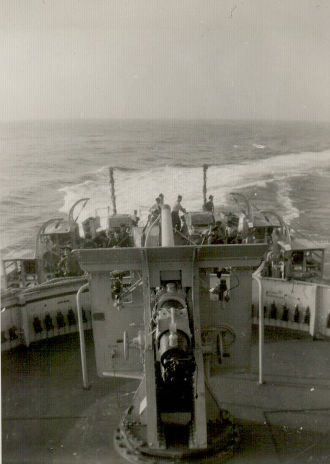 (RJS005) New London Ledge Light, New London, Connecticut, USA. HMCS CARLPLACE arrived in New London on Apr 4, 1945 and departed on Apr 5th escorting a RN Submarine to Greenock Scotland via the Azores. (RJS006) Looking after over the quarterdeck of HMCS CARLPLACE K664. Photo taken from the after gun tub (RHS007) Single barrel pom-pom on HMCS CARLPLACE K664 (RJS008-RJS009) EG C16 at Gibraltar Harbour 11-17 May 1945. EG C16 comprised of all Canadian River Class Frigates.