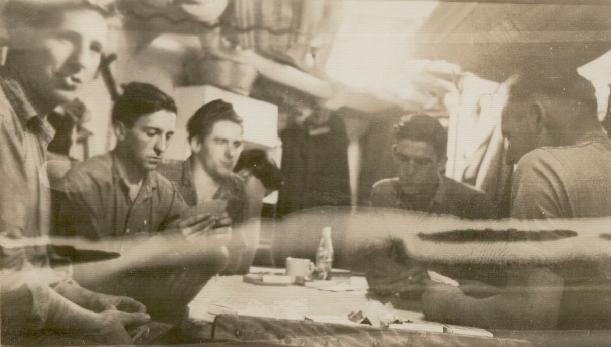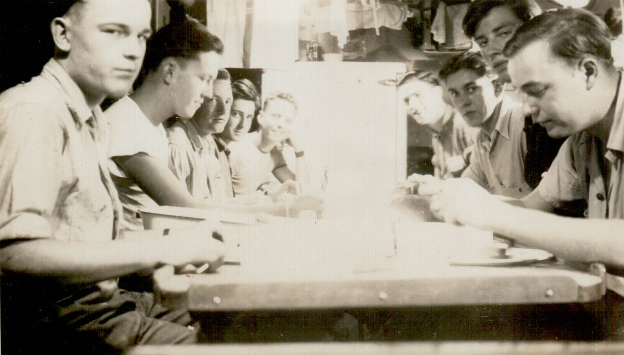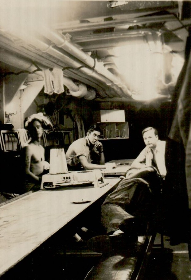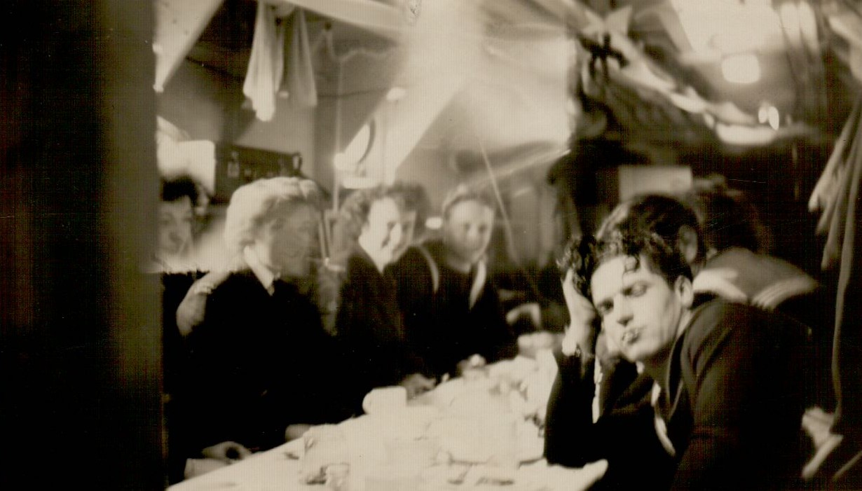 (RJS033-RJS035) Wrens onboard HMCS CARLPLACE K664 (RJS035) Reg Seabrook left side of table to the left of the Wrens
