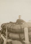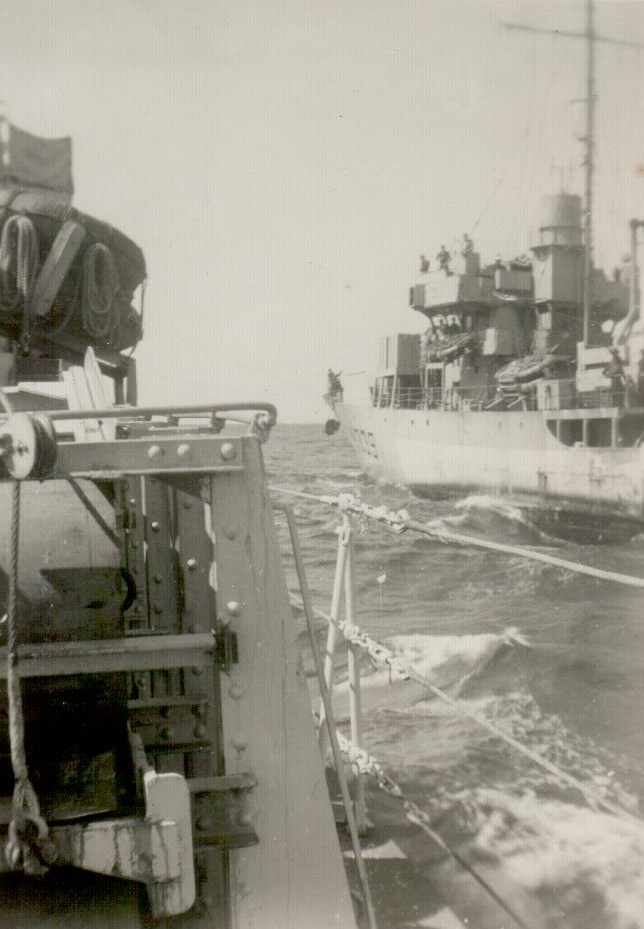 (RJS016-RJS018) HMCS NORTH BAY K339 conducting a transfer with HMCS CARLPLACE K664. In photo RJS017 a depth charge is being transferred (RJS019) Unknown sailor on HMCS CARLPLACE K664