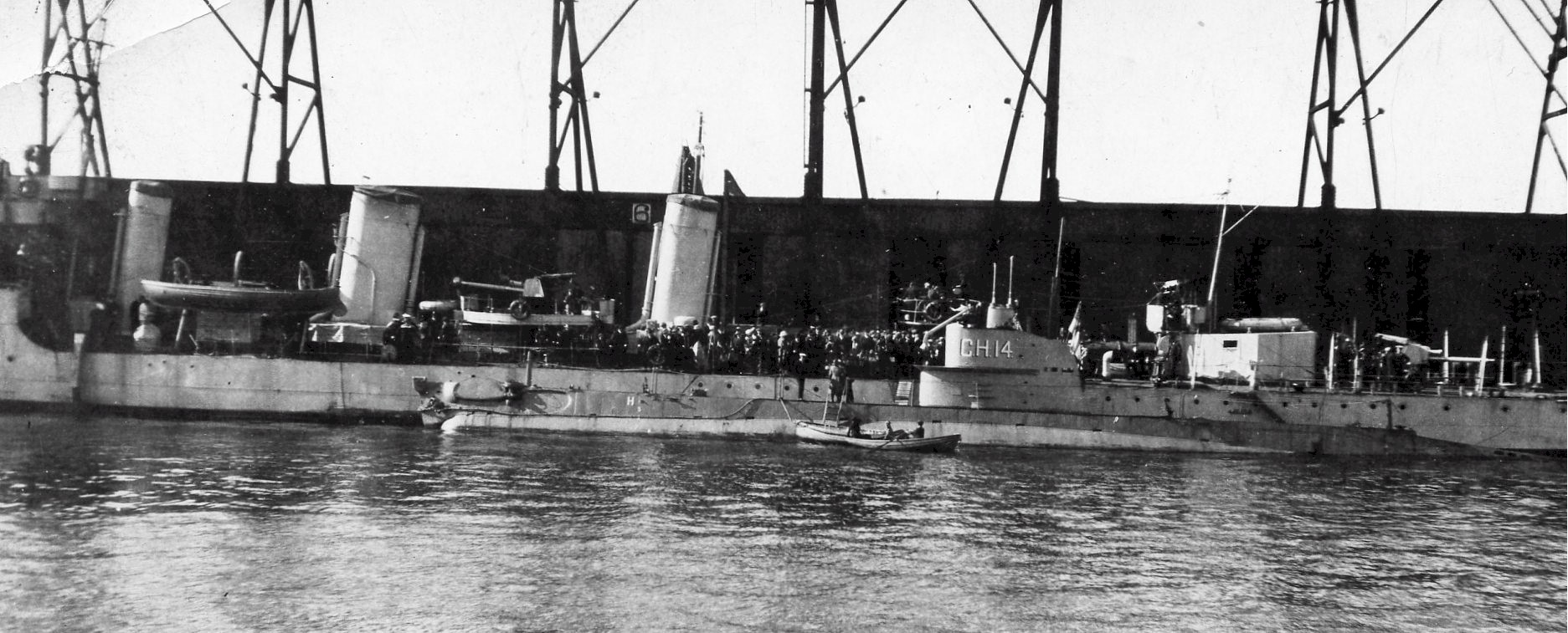 (CH14-005) CH-14 (left) and CH-15 (right) in drydock // Courtesy of the Naval Museum of Halifax (CH14-006) CH-14 (right) and CH-15 (left) in drydock // Courtesy of the Naval Museum of Halifax (CH14-007) Officers and ratings on HMCS CH-14 // Courtesy of the Naval Museum of Halifax Courtesy of the Naval Museum of Halifax