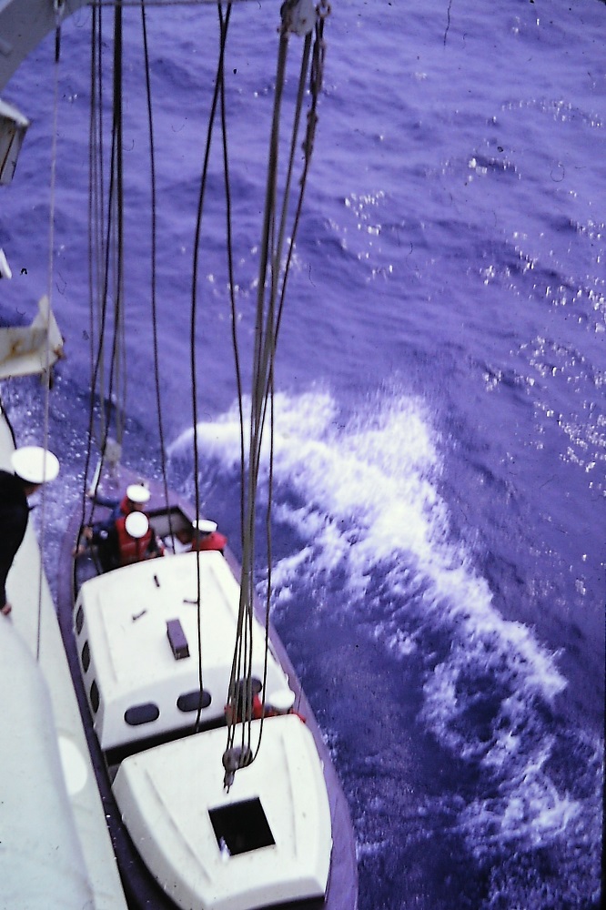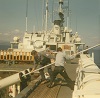 LSWU Del Kolrus (?sp) in HMCS CHAUDIERE'S mortar well