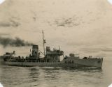 Built by Canadian Vickers Ltd., Montreal, Que, she was commissioned at Montreal on 12 May 1941. CHICOUTIMI arrived at Halifax on 17 May 1941. She carried out workups and then joined Sydney Force, escorting ocean convoys on the first leg of their eastward journey. In Sep 1941 she joined Newfoundland Command and left Sydney on 29 Sep 1941 to escort convoy SC.47 to Iceland. She was employed for the next five months as an ocean escort between St. John's and Iceland and, later, Londonderry. Reassigned to WLEF, she left 'Derry on 27 Feb 1942, to meet convoy On.71. She served with WLEF until Aug 1944 (from Jun 1943, on with EG W-1), when she was transferred to HMCS CORNWALLIS as a training ship. In Apr 1945, she went to Sydney Force and, on 16 Jun 1945, was paid off at Sorel for disposal. She was sold to Steel Co. of Canada, Hamilton, Ont., in Jun 1946 and broken up in the same year A credit to her builders, Canadian Vickers, CHICOUTIMI required only three short refits during her active career, and she was one of the few corvettes to survive the war with a short fo'c's'le.