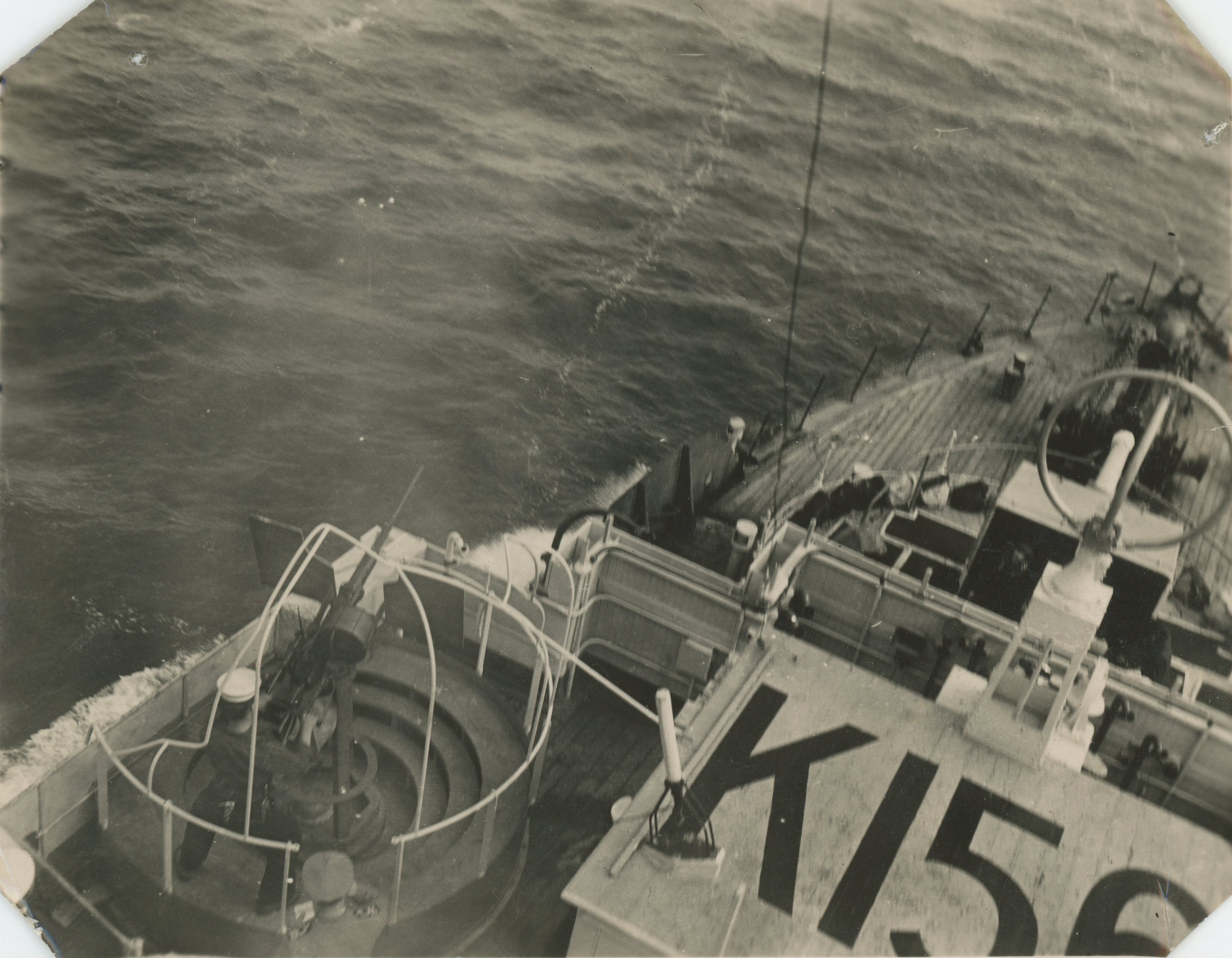 (RFG010) HMCS CHICOUTIMI K156 - 1943 (RFG011) HMCS CHICOUTIMI K156 - undated (RFG012 - RFG013) The bridge, gun deck and fo'c's'le of HMCS CHICOUTIMI K156 seen from the Crow's Nest