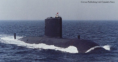 The former HMS UPHOLDER was laid up by the Royal Navy in Jun 1994, and accepted by Canada and named CHICOUTIMI in a ceremony in Faslane on 02 Oct 2004. Sailing for Halifax on 04 Oct 2004, while running on the surface in heavy seas northwest of Ireland on the 05 Oct 2004, CHICOUTIMI suffered a major electrical fire, resulting in total loss of power and propulsion, and the death of one crew member and injury of nine others. An international rescue effort involving British, Irish and American naval and civilian vessels eventually rescued the crew and took the submarine under tow for return to Faslane on 10 Oct 2004. She later was transported to Canada on the submersible heavy lift ship Eide Transporter, arriving in Halifax on 01 Feb 2005. CHICOUTIMI was not commissioned into the RCN, pending an assessment into the feasibility of repair. The ship was placed in an Extended Limited Maintenance Period (ELMP) and in Apr 2006 it was announced that repairs would be deferred until her Extended Docking Work Period (EDWP), then anticipated to commence in 2010, as the first EDWP to be conducted by industry under the Victoria In-Service Support Contract (VISSC). CHICOUTIMI was transported to the Canadian Submarine Maintenance Group (CSMG) facility in Esquimalt under the terms of the VISSC, on the submersible heavy lift ship Tern, arriving on 29 Apr 2009. She entered her EDWP as predicted, in Sep 2010, and was undocked in Nov 2013. CHICOUTIMI has commenced a tiered readiness program with the aim of having the submarine available for participation in a multi-national exercise planned for the fall of 2014.  On 03 Sep 2015, HMCS CHICOUTIMI was commissioned into the RCN at the navy dockyard, Esquimalt, BC. On 15 Jun 2017, HMCS CHICOUTIMI, while alongside at CFB Esquimalt, was struck by the Orca patrol craft Cougar which was exiting the harbour. There were no injuries from the incident.