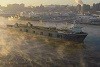 HMCS CHICOUTIMI arrives in Halifax on the Eide Transporter in February 2005