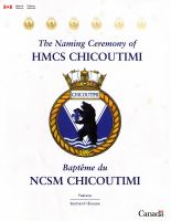 The former HMS UPHOLDER was laid up by the Royal Navy in Jun 1994, and accepted by Canada and named CHICOUTIMI in a ceremony in Faslane on 02 Oct 2004. Sailing for Halifax on 04 Oct 2004, while running on the surface in heavy seas northwest of Ireland on the 05 Oct 2004, CHICOUTIMI suffered a major electrical fire, resulting in total loss of power and propulsion, and the death of one crew member and injury of nine others. An international rescue effort involving British, Irish and American naval and civilian vessels eventually rescued the crew and took the submarine under tow for return to Faslane on 10 Oct 2004. She later was transported to Canada on the submersible heavy lift ship Eide Transporter, arriving in Halifax on 01 Feb 2005. CHICOUTIMI was not commissioned into the RCN, pending an assessment into the feasibility of repair. The ship was placed in an Extended Limited Maintenance Period (ELMP) and in Apr 2006 it was announced that repairs would be deferred until her Extended Docking Work Period (EDWP), then anticipated to commence in 2010, as the first EDWP to be conducted by industry under the Victoria In-Service Support Contract (VISSC). CHICOUTIMI was transported to the Canadian Submarine Maintenance Group (CSMG) facility in Esquimalt under the terms of the VISSC, on the submersible heavy lift ship Tern, arriving on 29 Apr 2009. She entered her EDWP as predicted, in Sep 2010, and was undocked in Nov 2013. CHICOUTIMI has commenced a tiered readiness program with the aim of having the submarine available for participation in a multi-national exercise planned for the fall of 2014. On 03 Sep 2015, HMCS CHICOUTIMI was commissioned into the RCN at the navy dockyard, Esquimalt, BC. On 15 Jun 2017, HMCS CHICOUTIMI, while alongside at CFB Esquimalt, was struck by the Orca patrol craft Cougar which was exiting the harbour. There were no injuries from the incident.