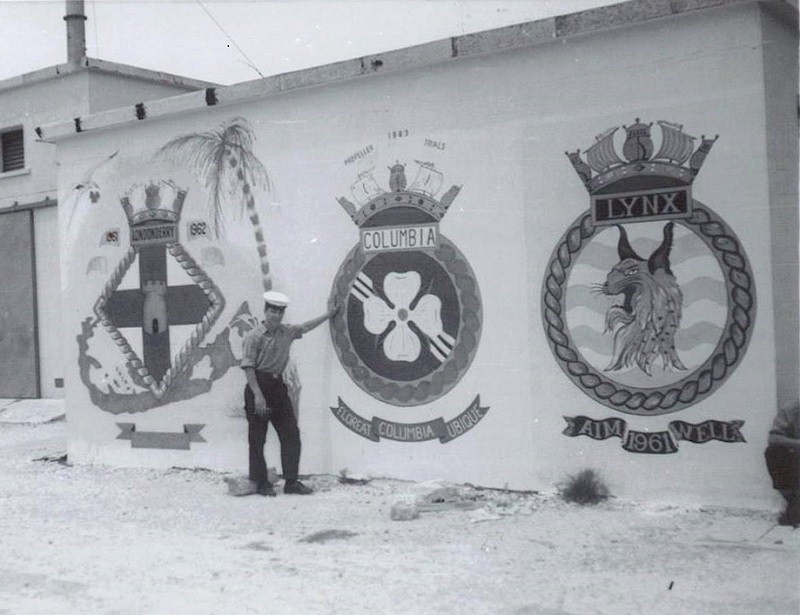 Ship's badge of HMCS COLUMBIA 260 (centre) in Bermuda