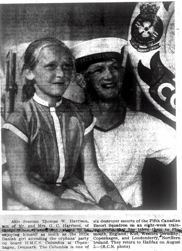 at Copenhagen, Denmark for children from an orphanage. Able Seaman Thomas W. Harrison is in the photo with one