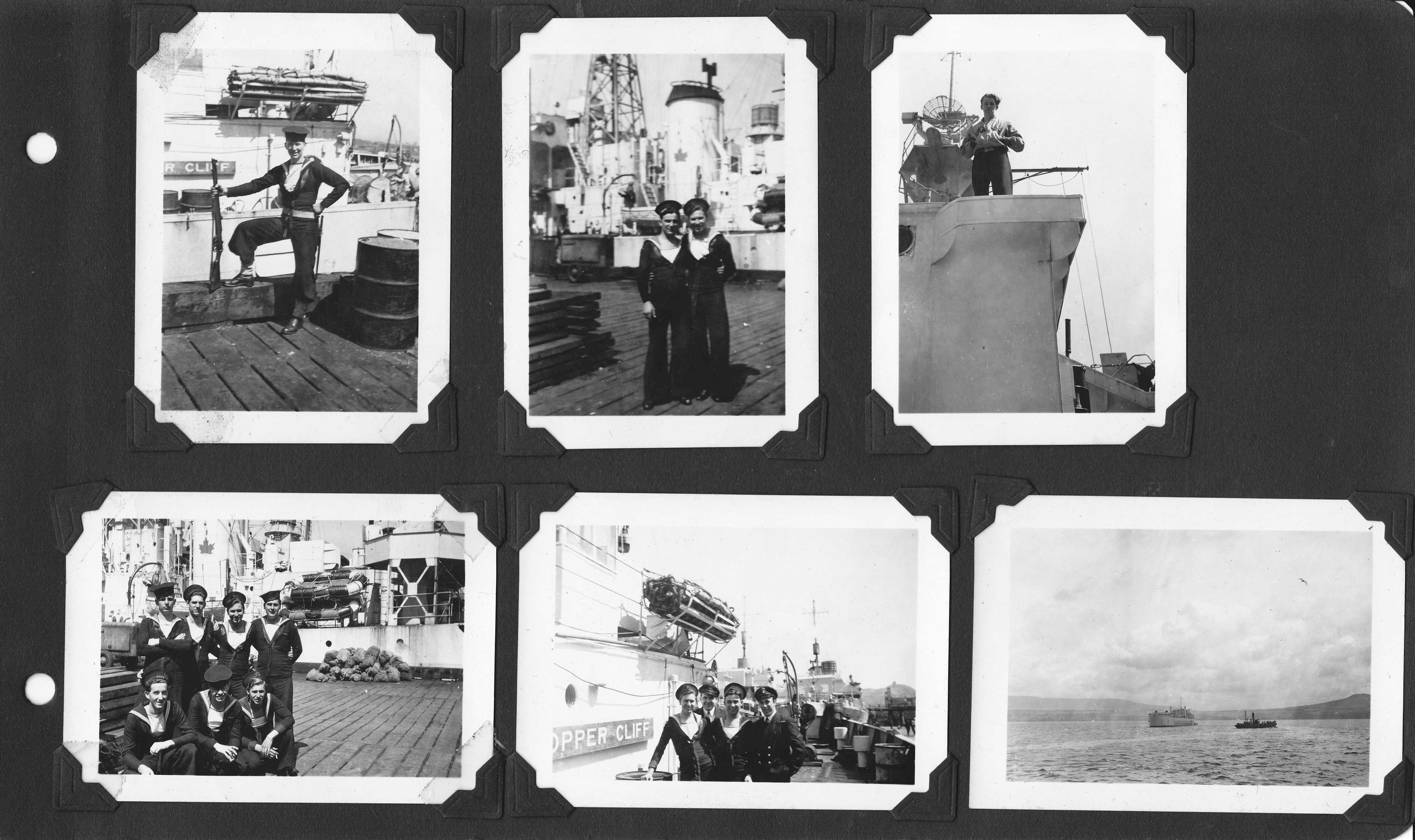 (WC21) Unidentified sailor on HMCS COPPER CLIFF (WC22) Unidentified sailors on HMCS COPPER CLIFF (WC23) Unidentified sailor on HMCS COPPER CLIFF (WC24) Sailors from HMCS COPPER CLIFF ashore - location unknown (WC25) HMCS SUSSEXVALE alongside the jetty