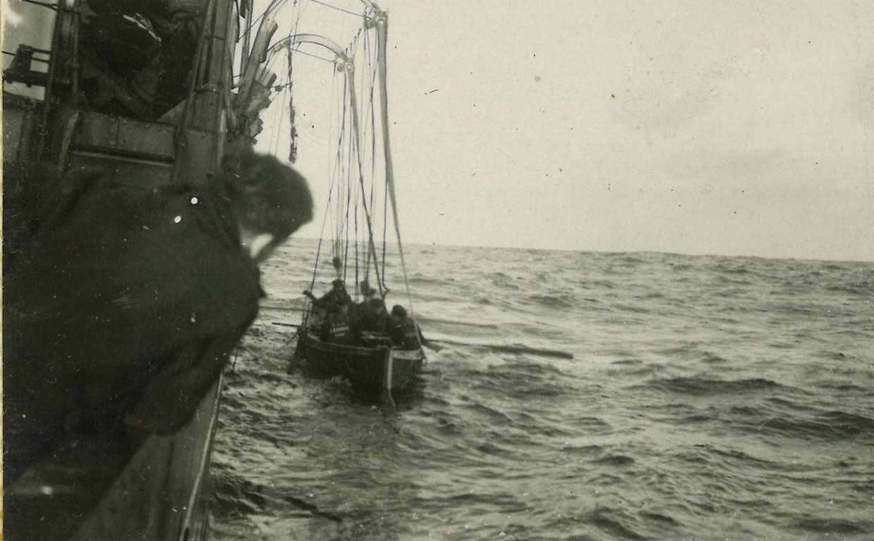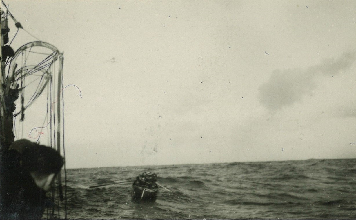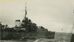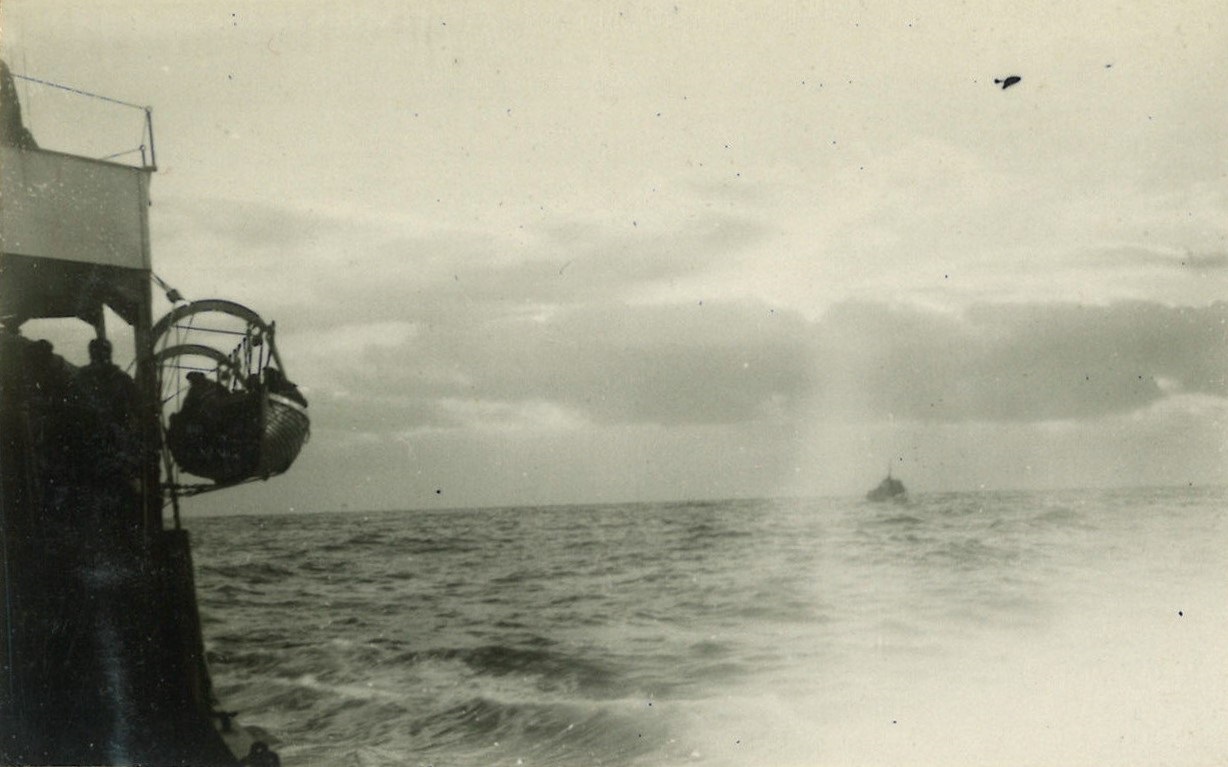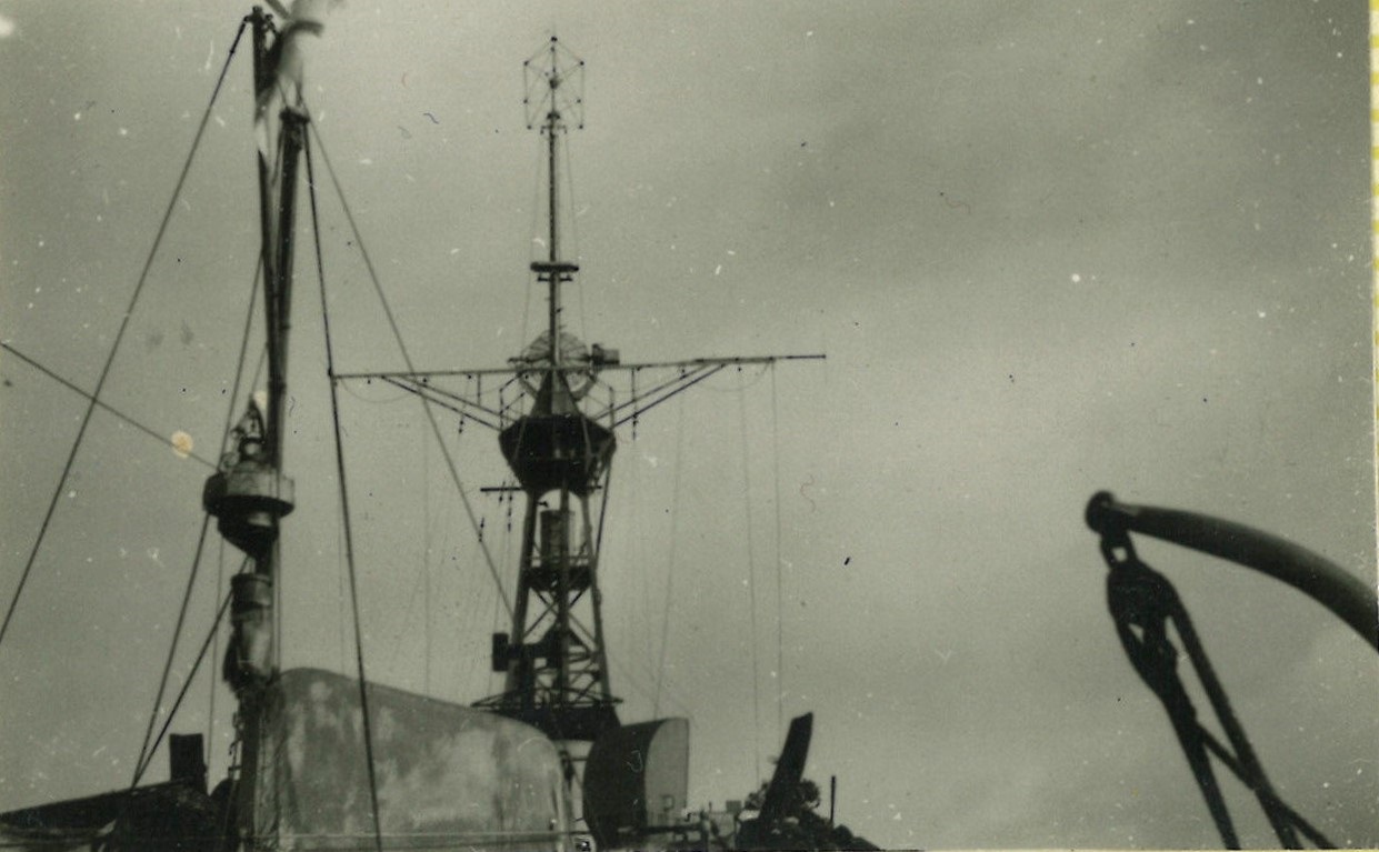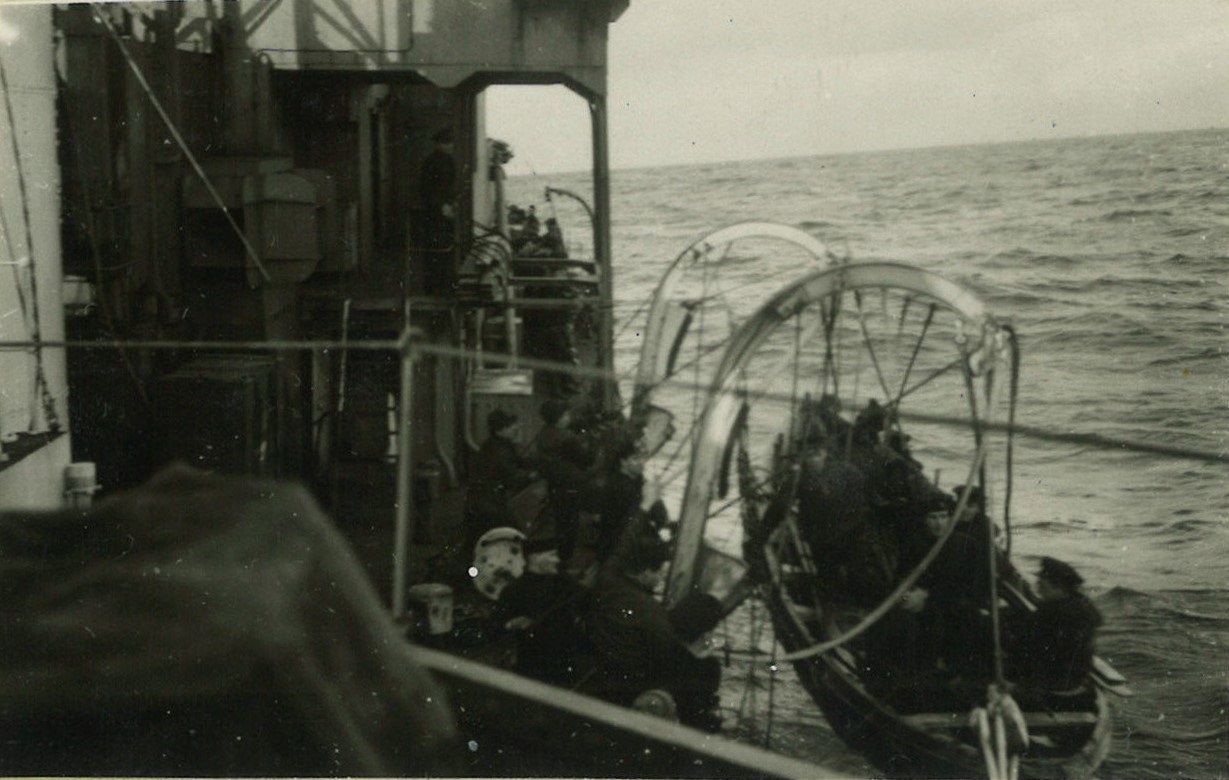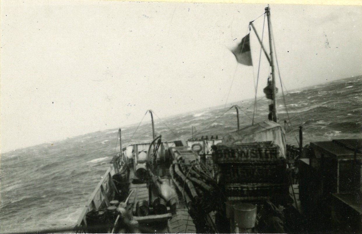 (WC81-WC84) Smoke from burring tanker (WC85) HMCS COPPER CLIFF steaming towards burning tanker Courtesy of William (Bill) Carey via his nephew Jeff Tripp