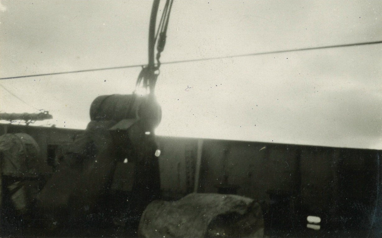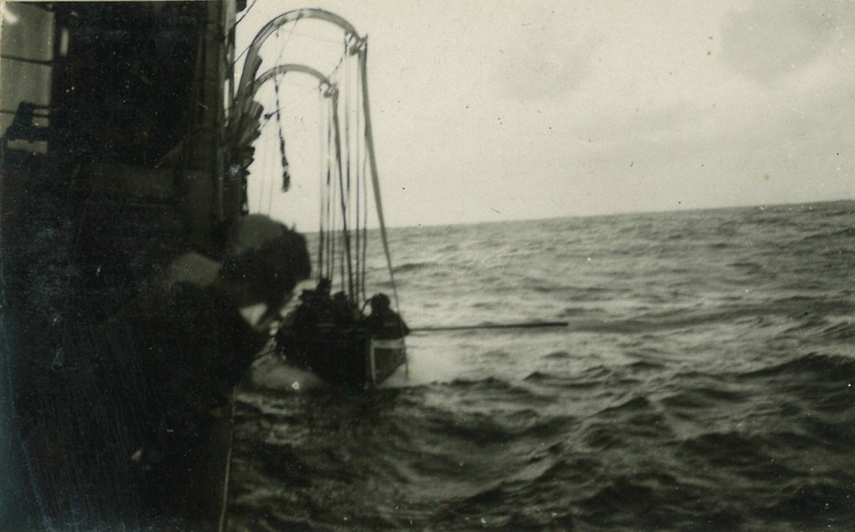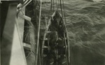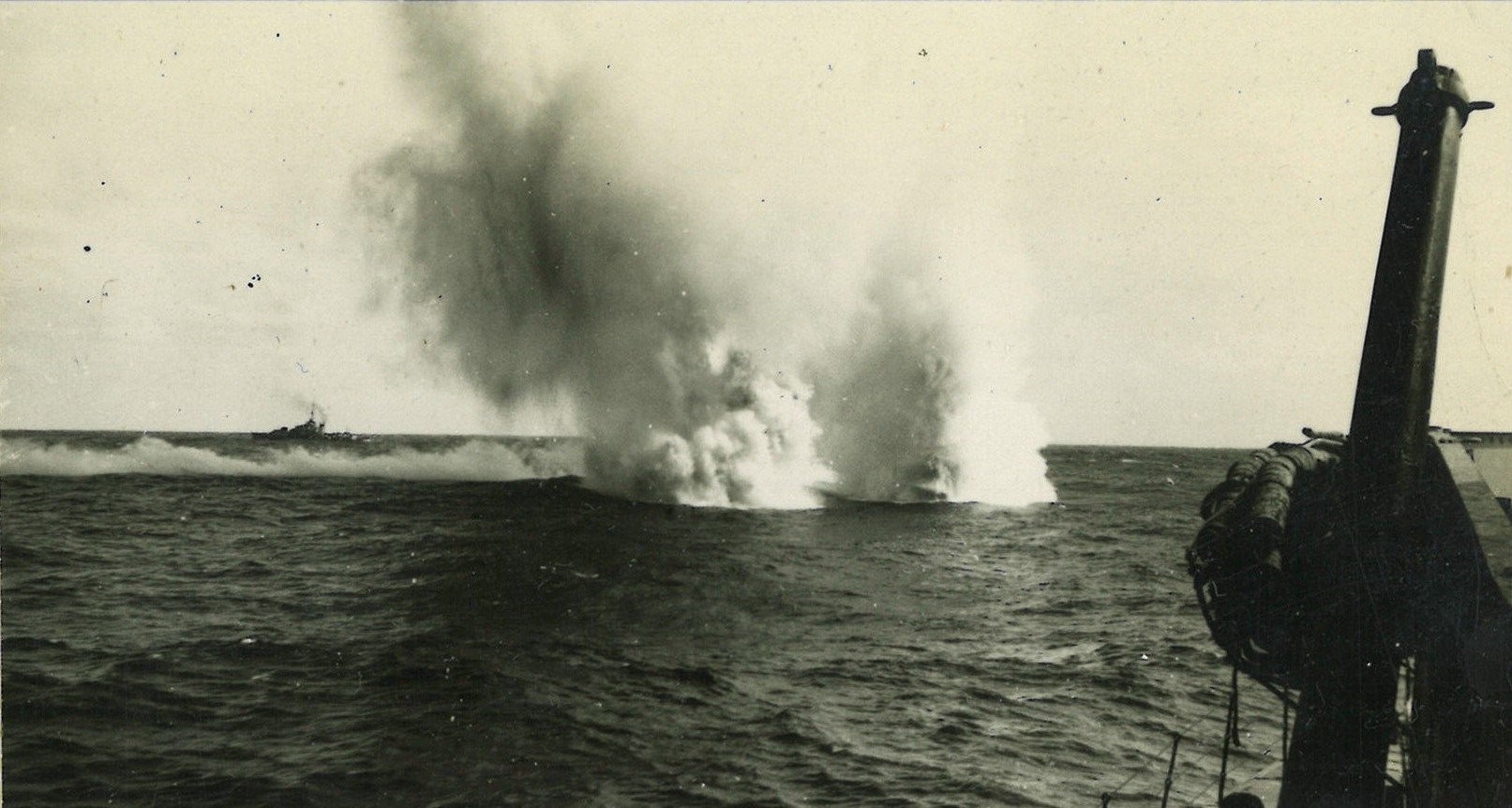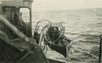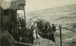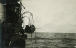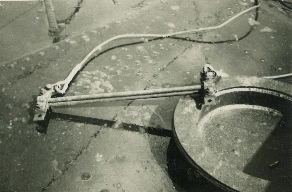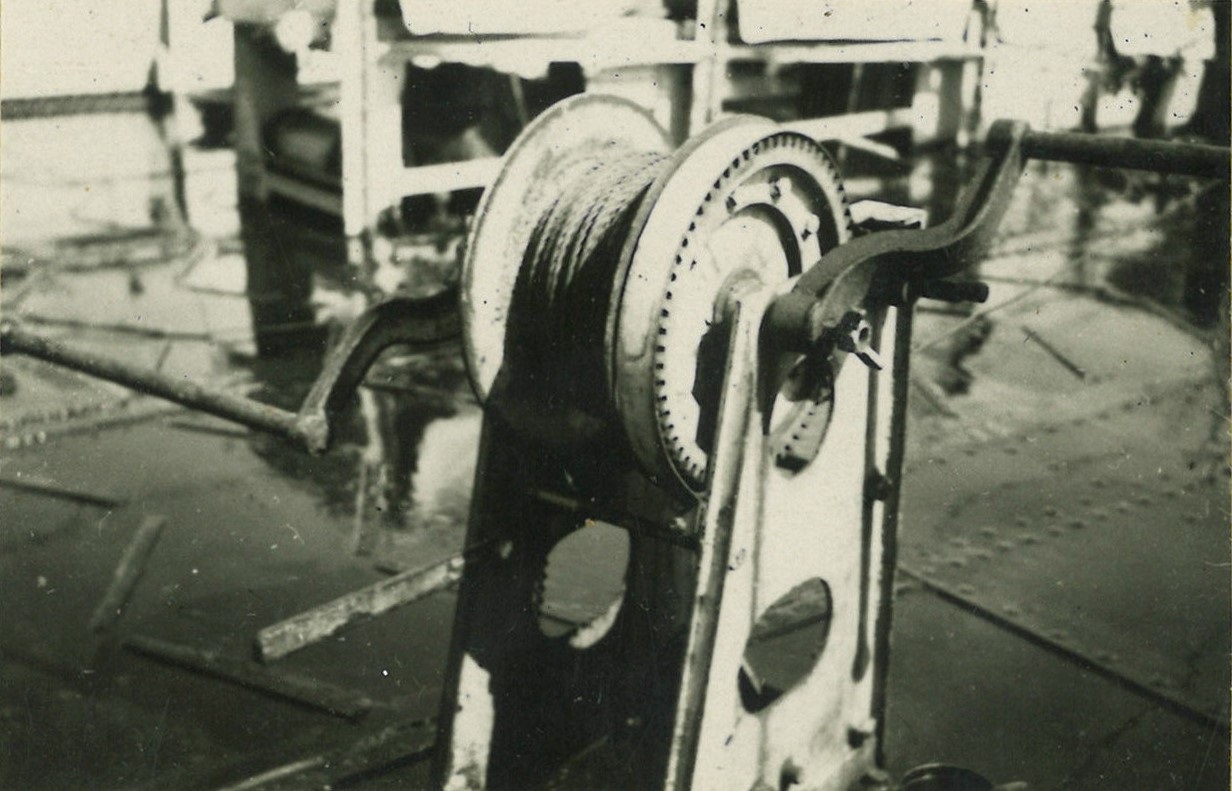 (WC46-WC47) Unidentified sailors on the quarter deck of HMCS COPPER CLIFF (WC48) Depth charge exploding astern of HMCS COPPER CLIFF with a unknown destroyer in the background (WC49) Hand cranked winch on HMCS COPPER CLIFF. It is believed this is used for paying out and bringing in the C.A.T. gear (WC50) The C.A.T. gear on HMCS COPPER CLIFF