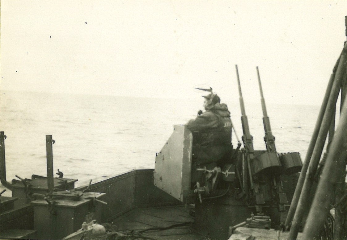 (WC31) Unidentified sailors on HMCS COPPER CLIFF (WC32-WC35) Unidentified sailor on watch at AA gun on HMCS COPPER CLIFF