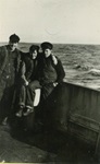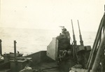(WC66-WC69) Unidentified sailor on HMCS COPPER CLIFF enjoying a bit of solitude in a quiet spot on the quarterdeck in rough seas (WC70) Two unidentified sailors looking over an AA gun mount on HMCS COPPER CLIFF