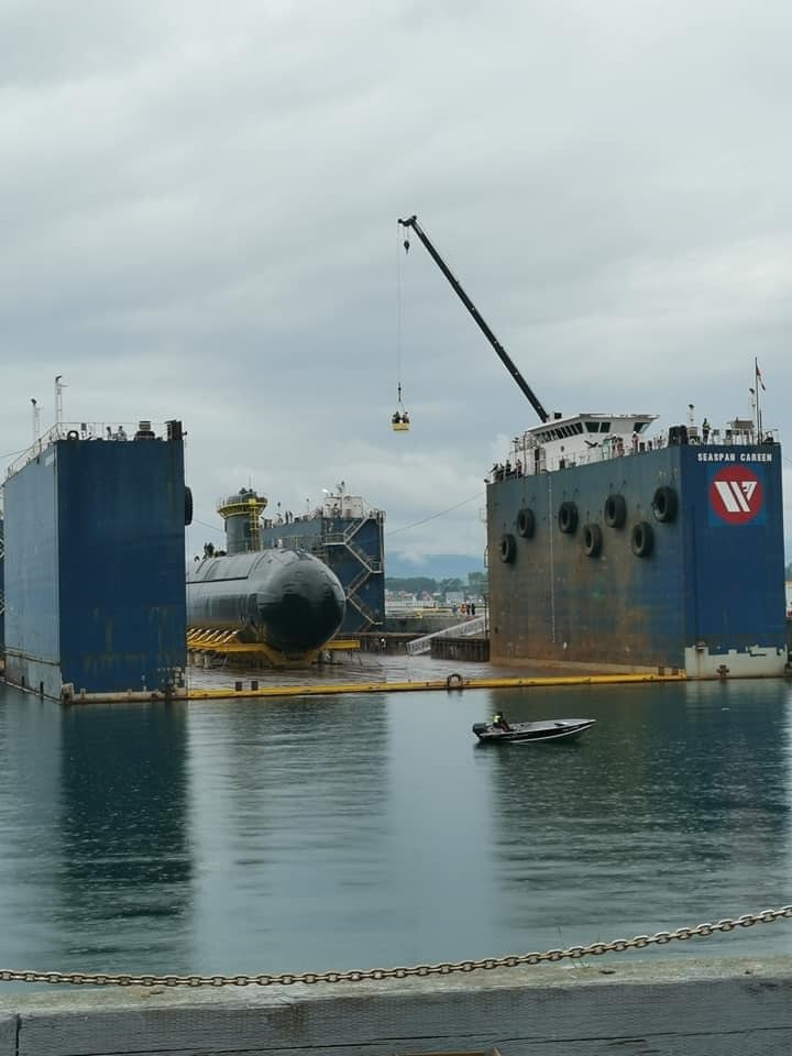 HMCS CORNER BROOK conducting sea trials in the Strait of Juan de Fuca off southern Vancouver Island on Feb. 13, 2025, nearly 14 years after her grounding (hit bottom) near Nootka Sound, tearing a hole in the hull. Source/Credit: CTV news 19 Feb 2025
