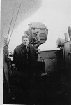 (JL04) Harold Hague by the 20-inch signal lamp on the bridge of HMCS COWICHAN J146