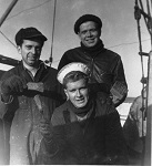 (JL06) Painting onboard HMCS COWICHAN J146 - front: Harold Hague - back: Stan Norman (left) and Jim Leslie