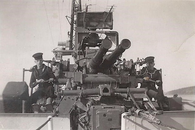(right) on the twin bofors on HMCS CRESCENT, 03 Sep 1946
