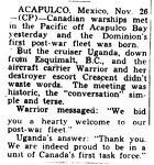 Newspaper article on the arrival of HMCS CRESCENT