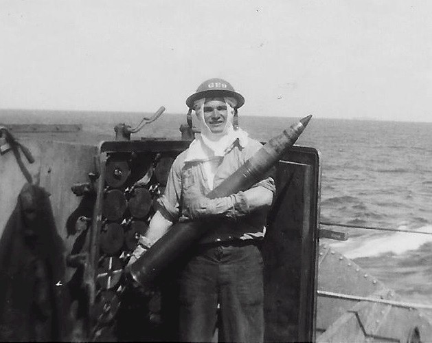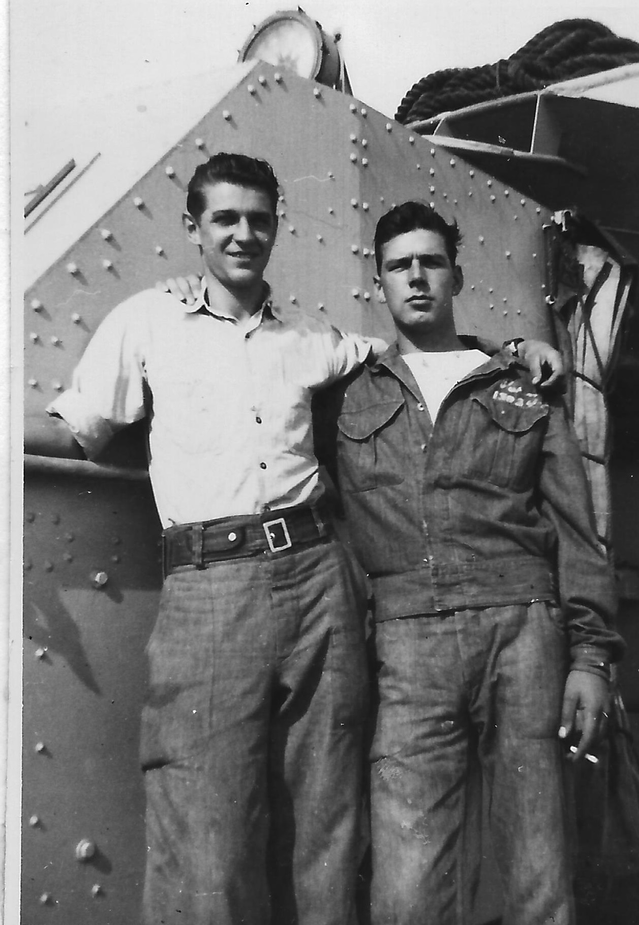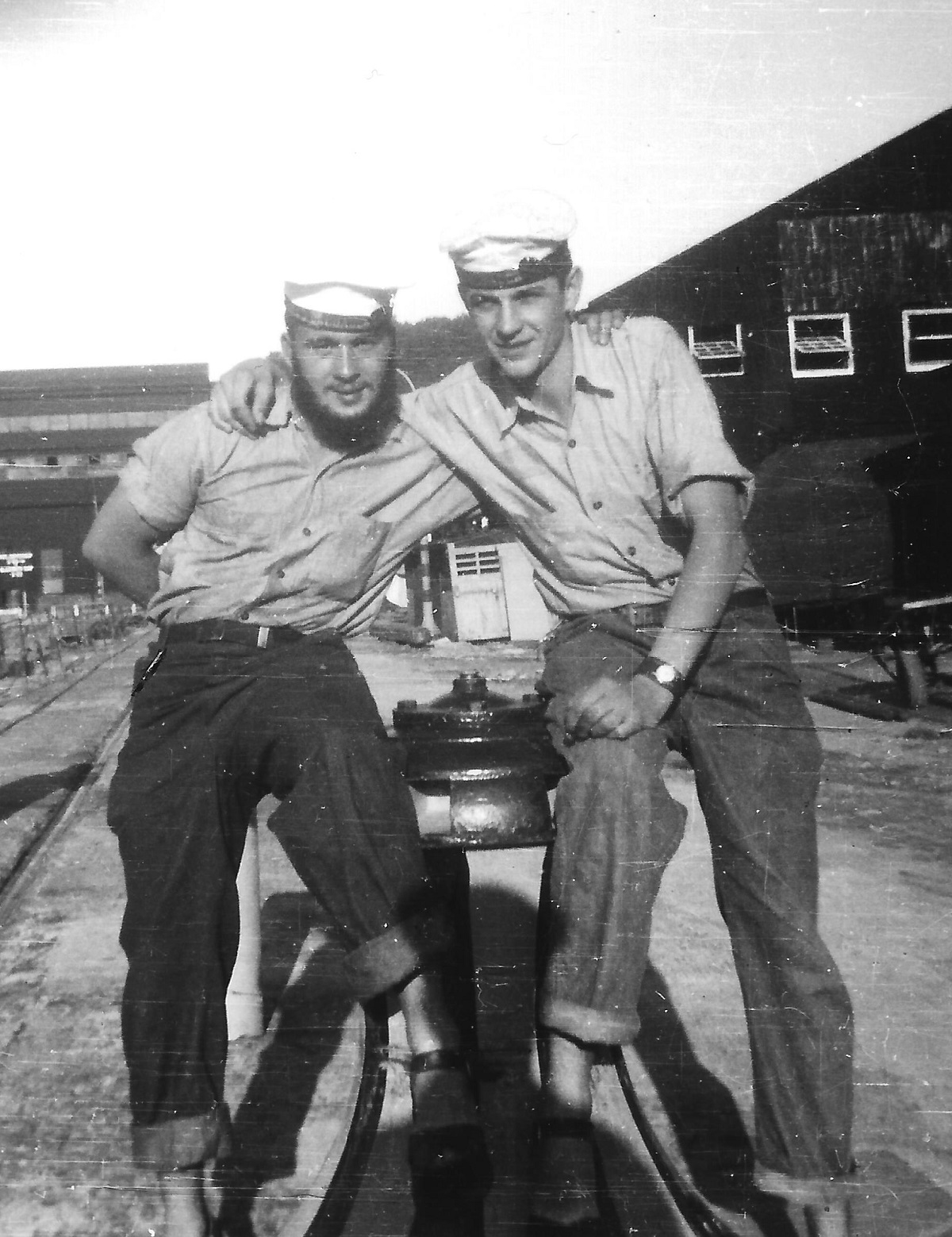 (SH25) Cliff Bulme (left) and Steve Hlasny, Yokosuka drydock, 1952 (SH26) Cliff Bulme, Yokosuka dry dock, 1952 (SH27) Unknown crew member, 8 mess, HMCS CRUSADER, 1952 (SH28) Steve Hlasny holding a 4.5" casing (SH29) Dan McIsaac at AA gun mount, HMCS CRUSADER