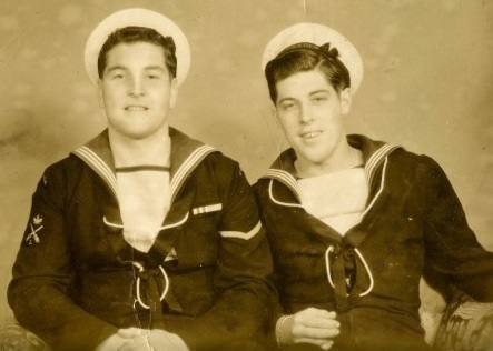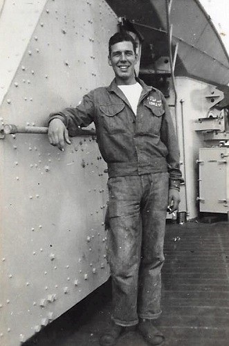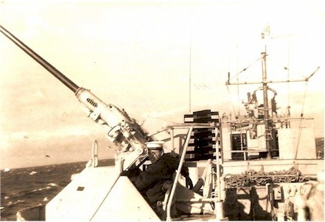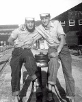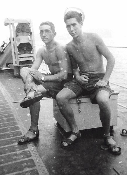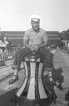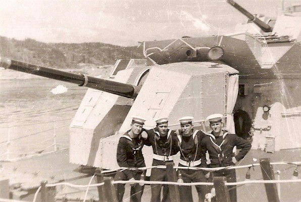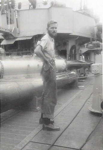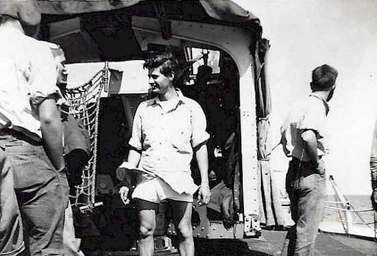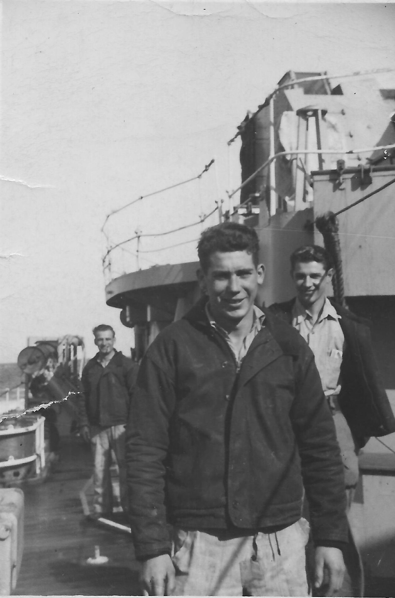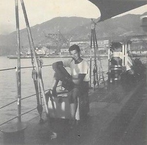 (SH20) L-R: Pinkus, McIsaac and Hlasny, on HMCS CRUSADER, Jul 1952 (SH21) Steve Hlasny (L) and John Parent, on HMCS CRUSADER, Jul 1952 (SH22) ABNQ Bill Jesney on HMCS CRUSADER (SH23) AB Steve Hlasny by "X" gun, HMCS CRUSADER, 1952 (SH24) LS Lanky Inouye, HMCS CRUSADER, 1952