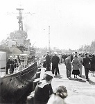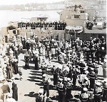 (BT132-134) Hula dancers greet HMCS CRUSADER in Hawaii on her return trip home (BT135) HMCS CRUSADER ship's company dance after her Korean War tour